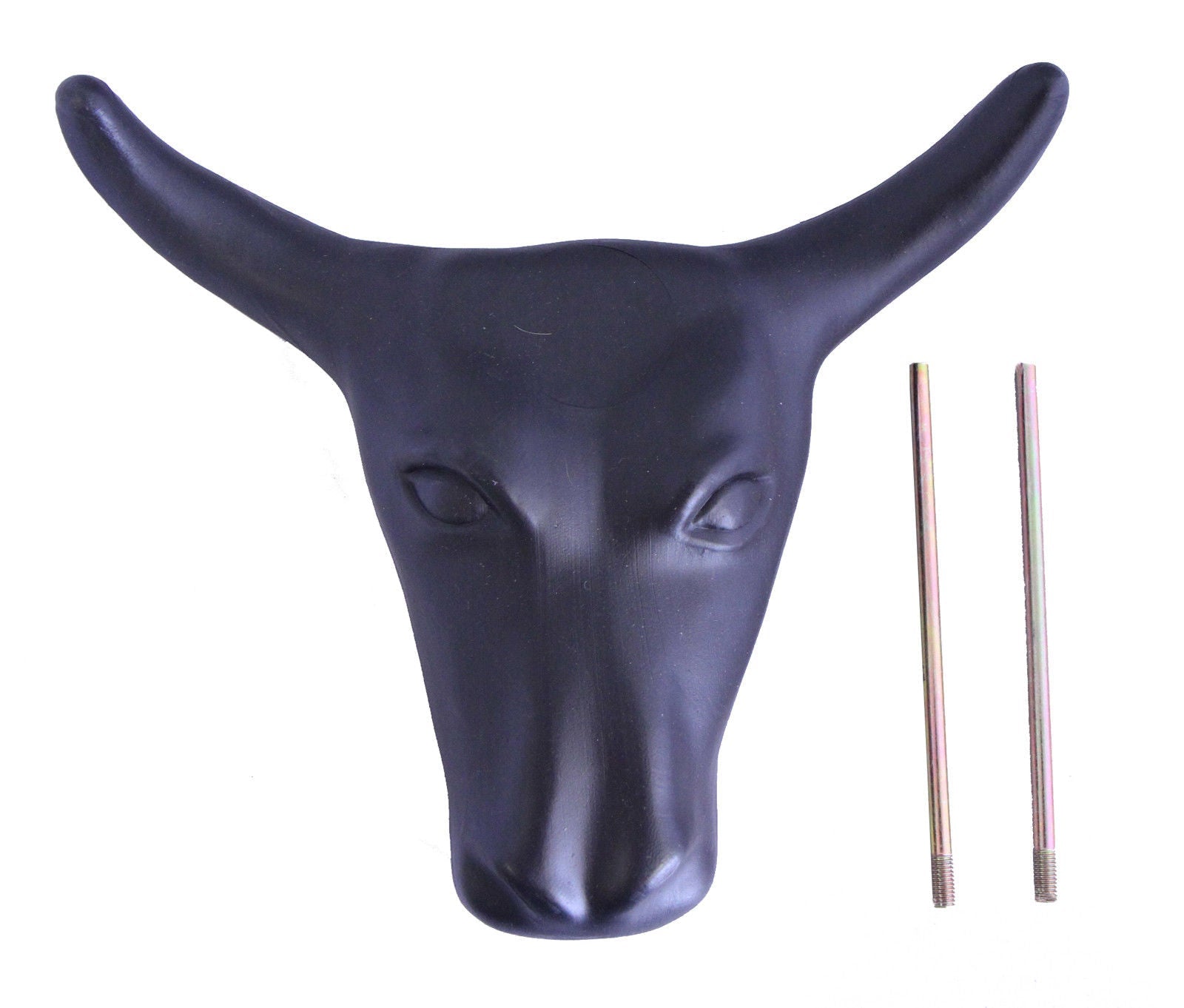 The AJ Tack Junior Steer Head Roping Dummy is perfect for young ropers looking to hone their skills. Made from heavy-duty polyethylene, this durable steer head is built to withstand repeated practice sessions. It includes two 7" steel rods for easy and secure attachment to a hay bale, making it an excellent training tool for beginners.