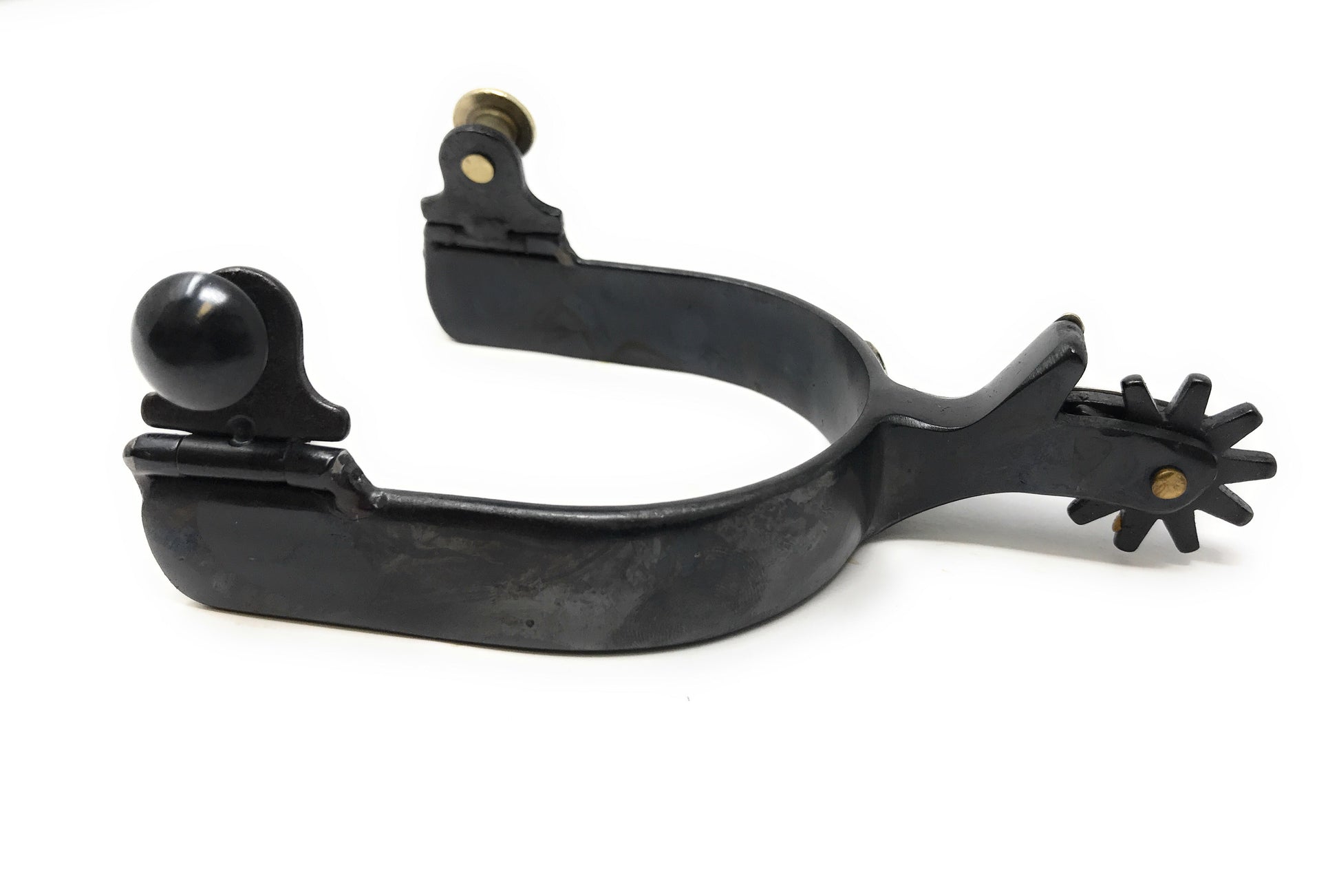 The AJ Tack Men's Antique Brown Stars and Flowers Spurs are crafted for the western showman who values timeless design and practicality. These black steel spurs feature hand-engraved silver floral conchos and star overlays, adding a touch of sophistication to their rugged build.