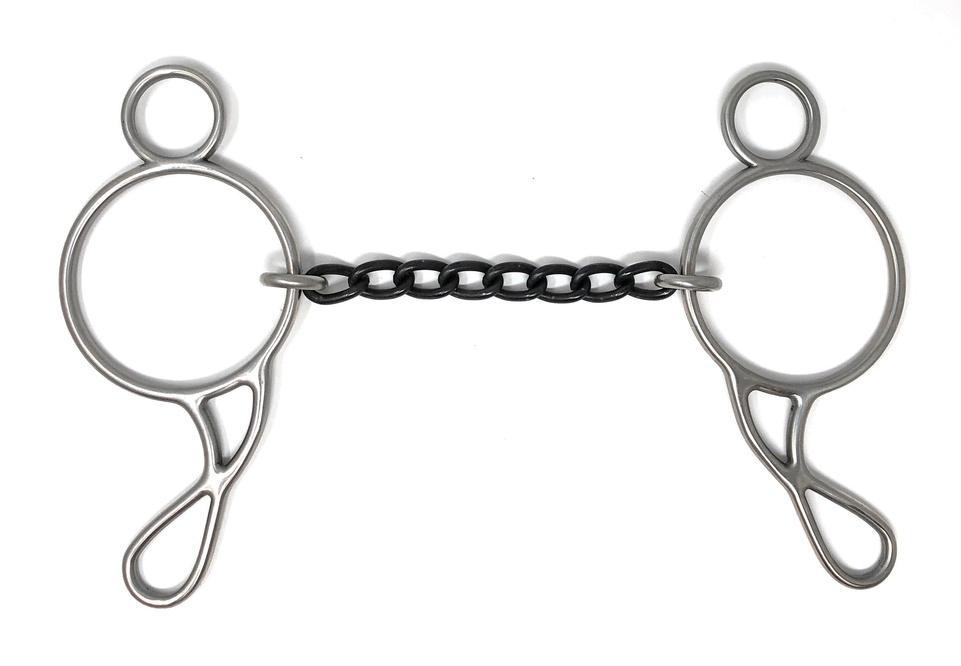 The AJ Tack Stainless Steel Wonder Gag Bit is designed to provide controlled leverage and encourage flexion. Featuring a 5" sweet iron chain mouth, this bit promotes salivation and enhances bit acceptance. The 7" stainless steel cheeks deliver mild leverage, making it ideal for training and advanced riders looking for additional control.