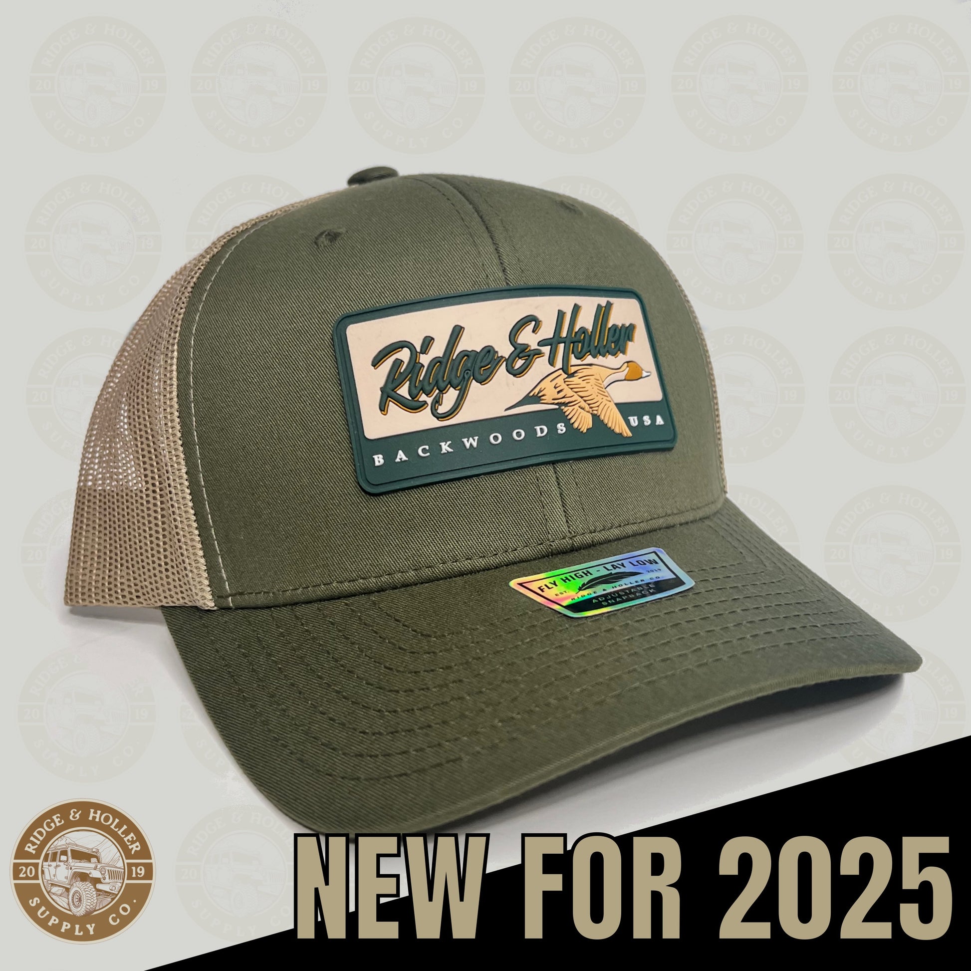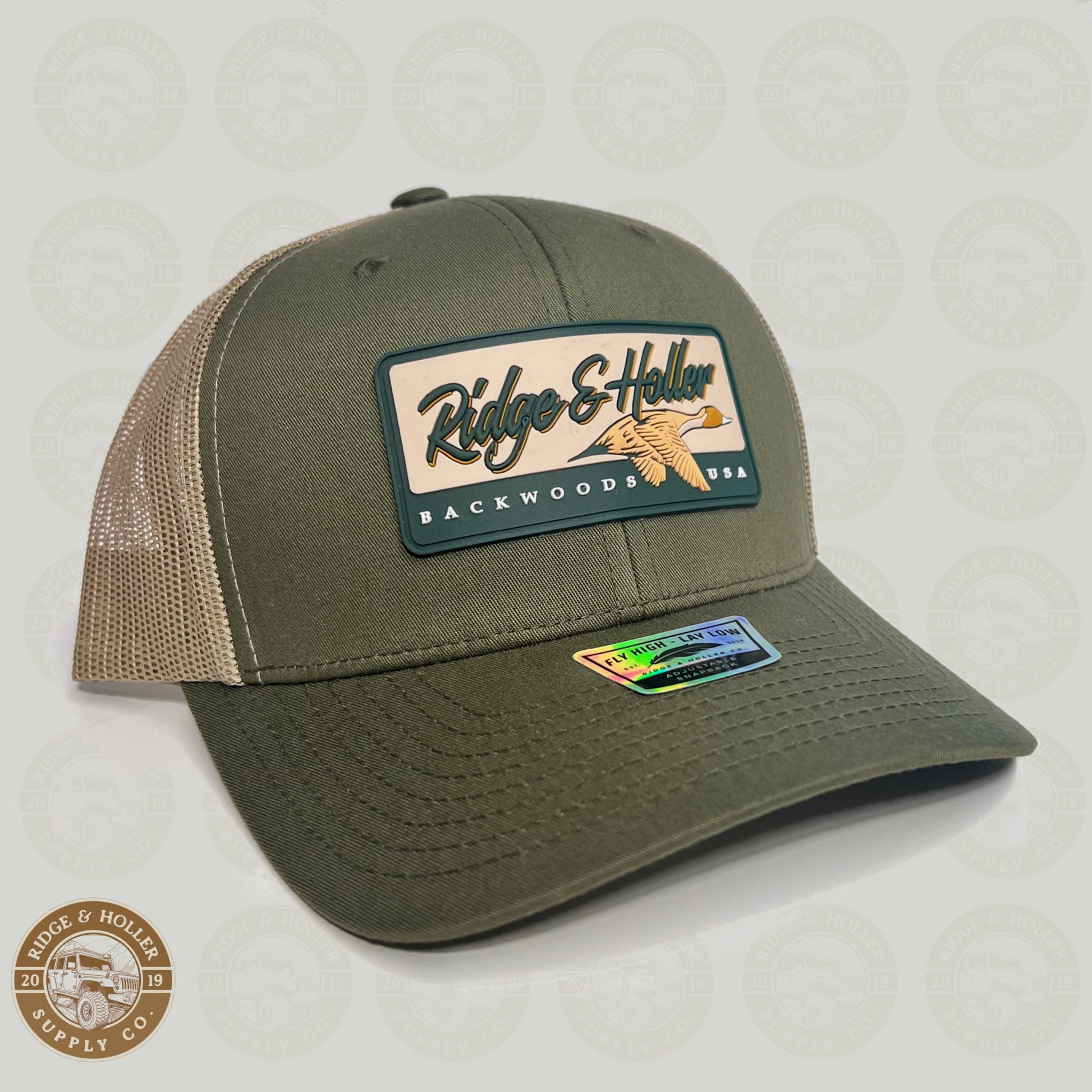 Meet the newest member of the Ridge&Holler family. With the Backwoods hat, you'll enjoy a winning combination of style and comfort. Crafted with a mid rise and a full mesh back for a snug fit, this cap features a moss and khaki color-way that adds a touch of rugged charm. Perfect for your next outdoor adventure.