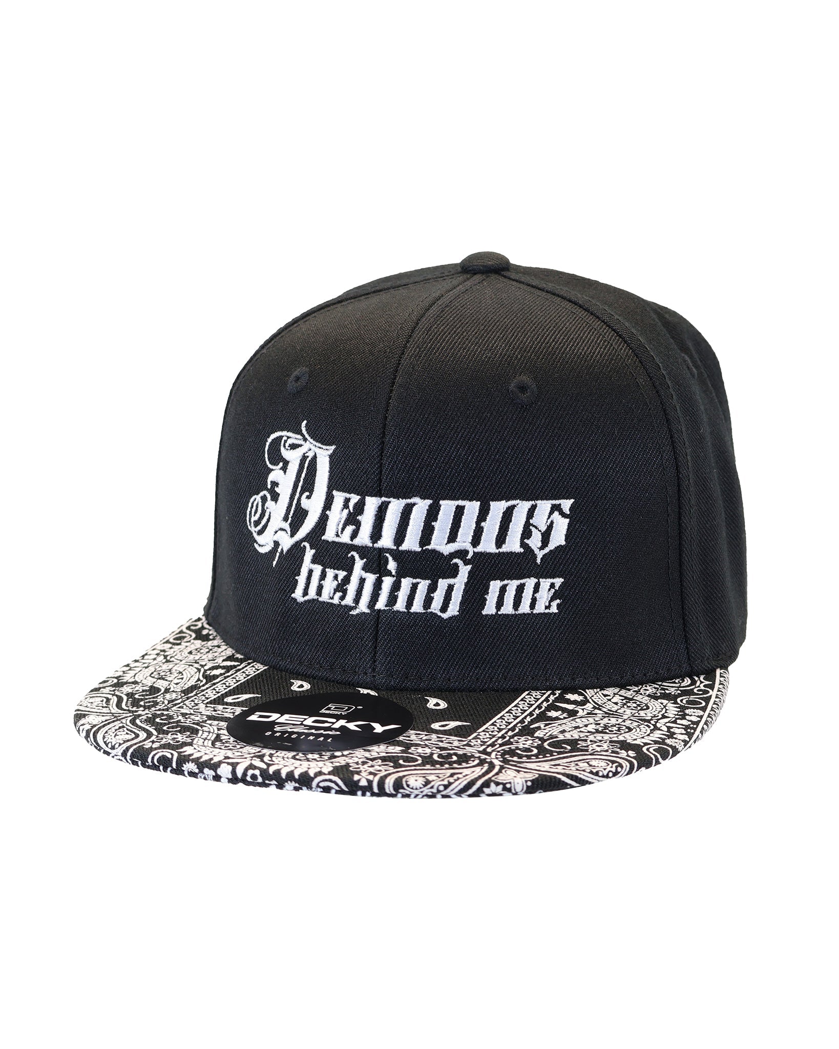 The Bandana Bill Snapback Hat, 6 Panel Paisley Flat Bill Cap is a 6-panel structured cap featuring a unique paisley/bandana design on the bill. This cap features an integrated cotton sweatband, retro flat bill, stitched eyelets, and is finished with a plastic snapback closure.