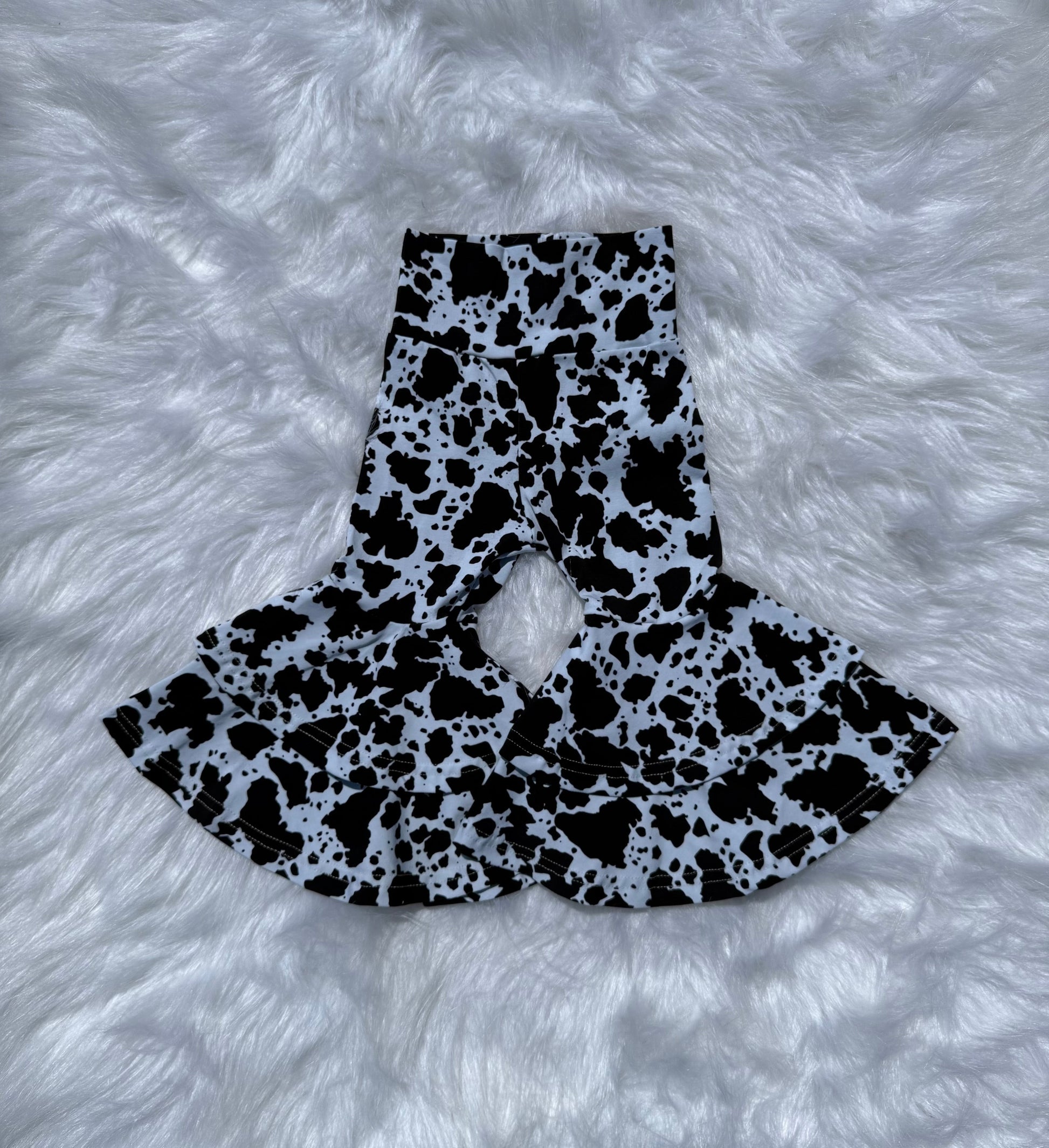 Black Cow Print Double Bell Bottoms