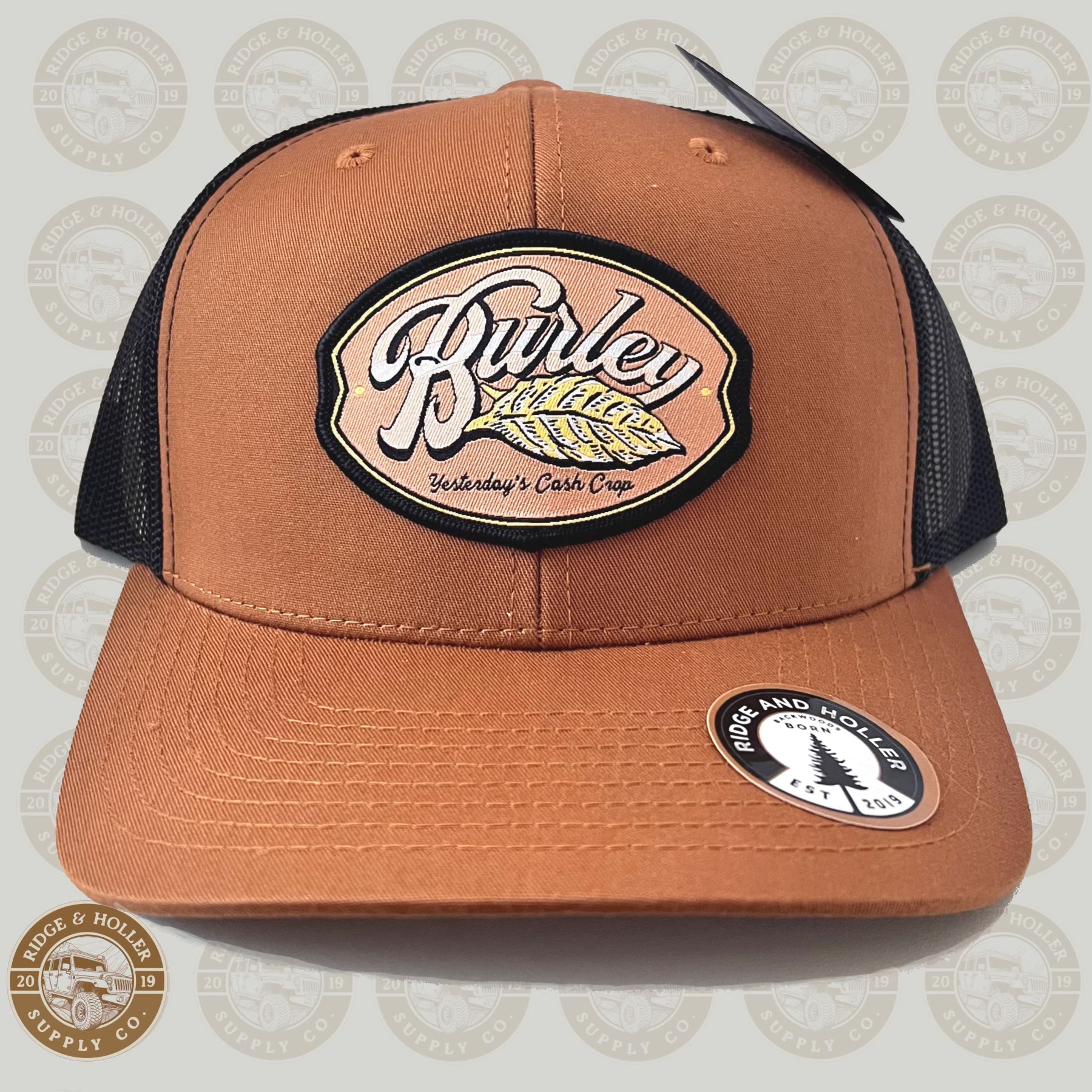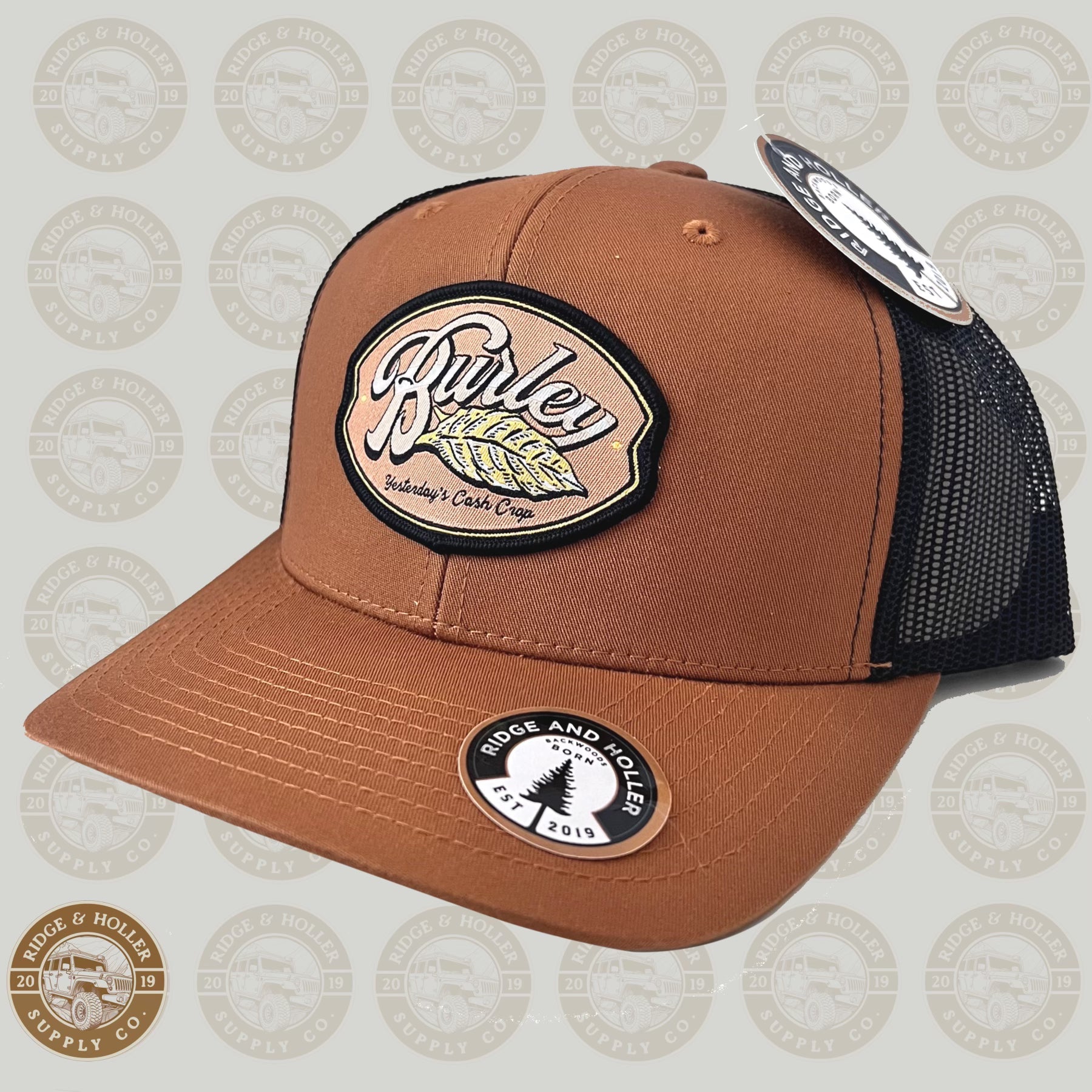 "Commemorate our Ridge and Holler roots with this Burley hat. Entitled "Yesterday's Cash Crop," it pays tribute to our rich heritage." This Burley hat tells the story of our past. With a design inspired by our Ridge and Holler roots, caramel/black mid rise snapback