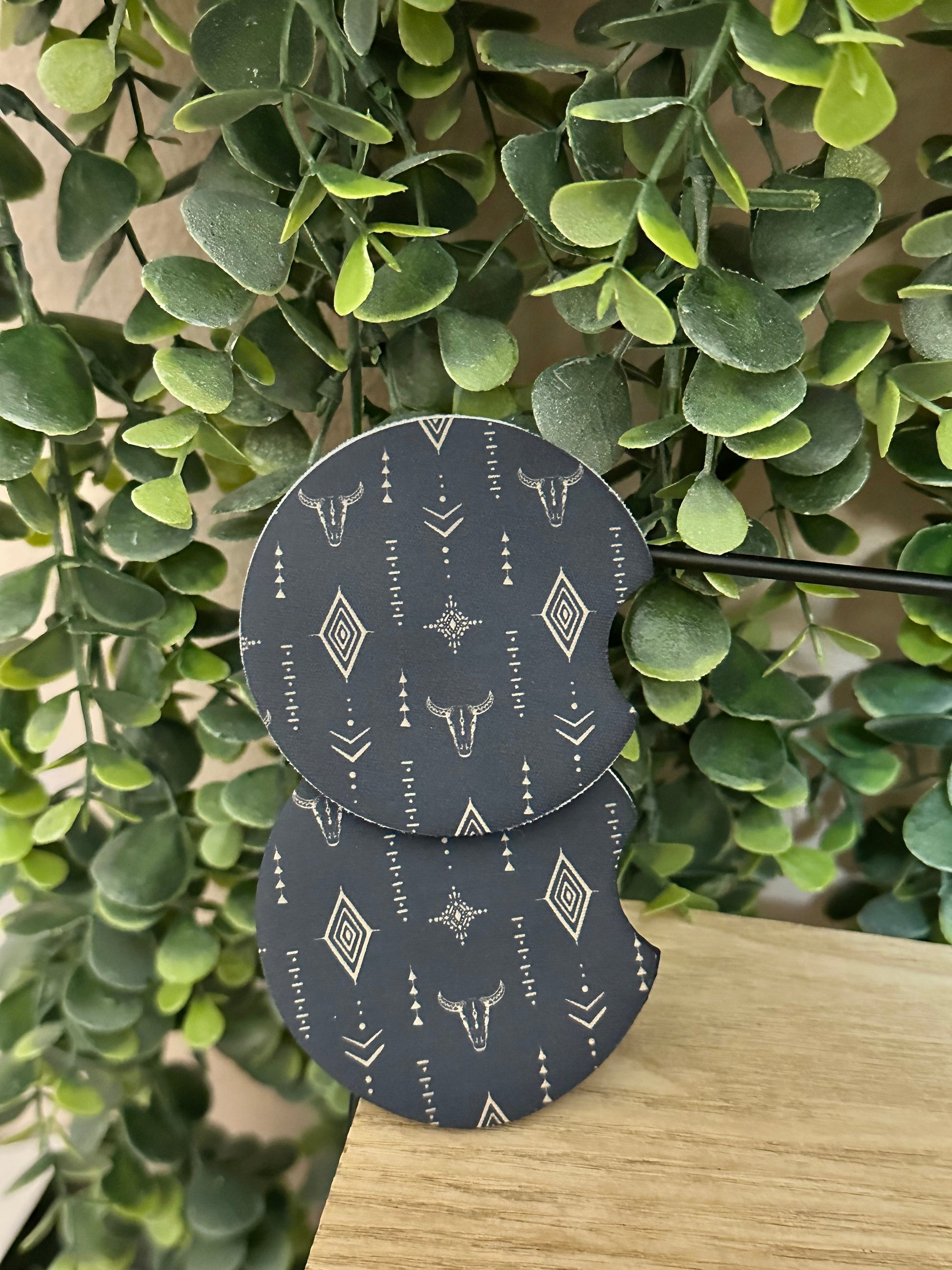Bull Skull Car Coasters - comes in a set of 2