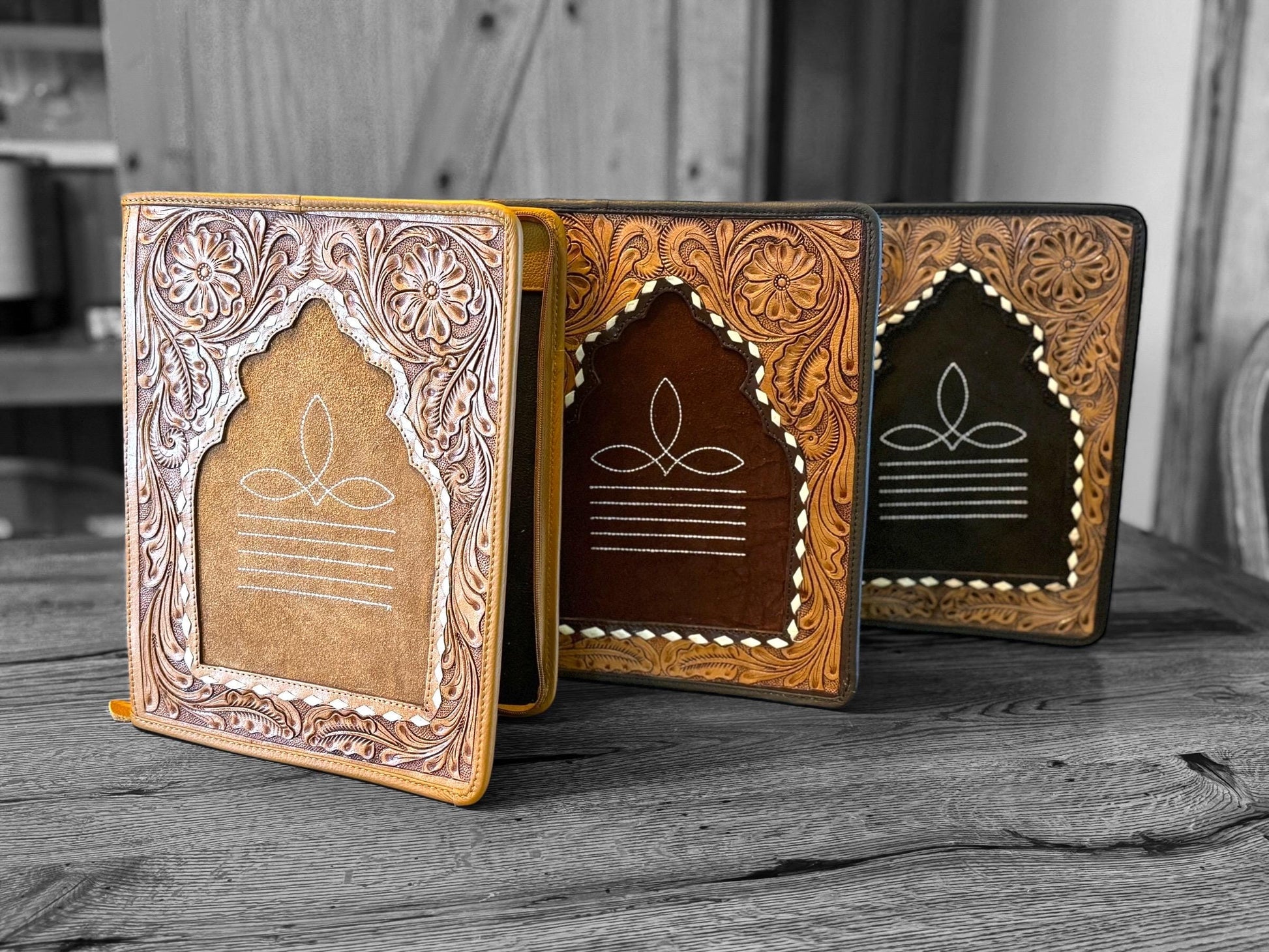 Business Autograph Headshot 3 Ring Folder Western Cowhide tooled leather by Double B Wild Rags