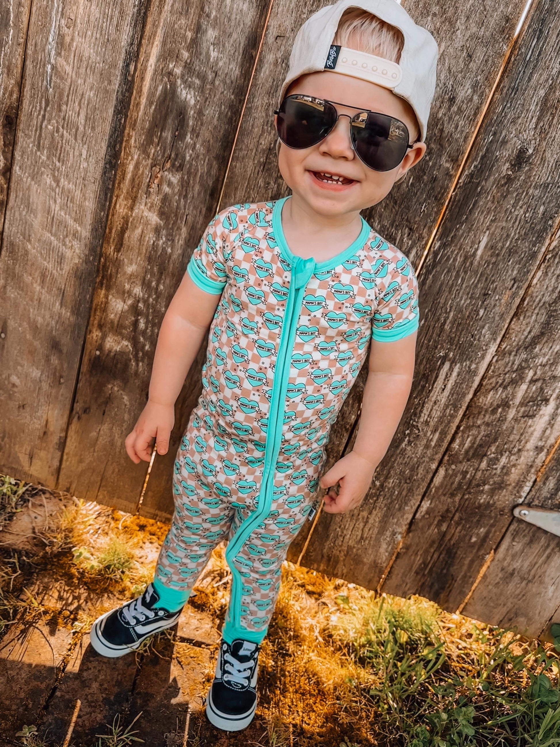 Checkered Mama's Boy Short Sleeve Bamboo Sleeper (FINAL SALE)