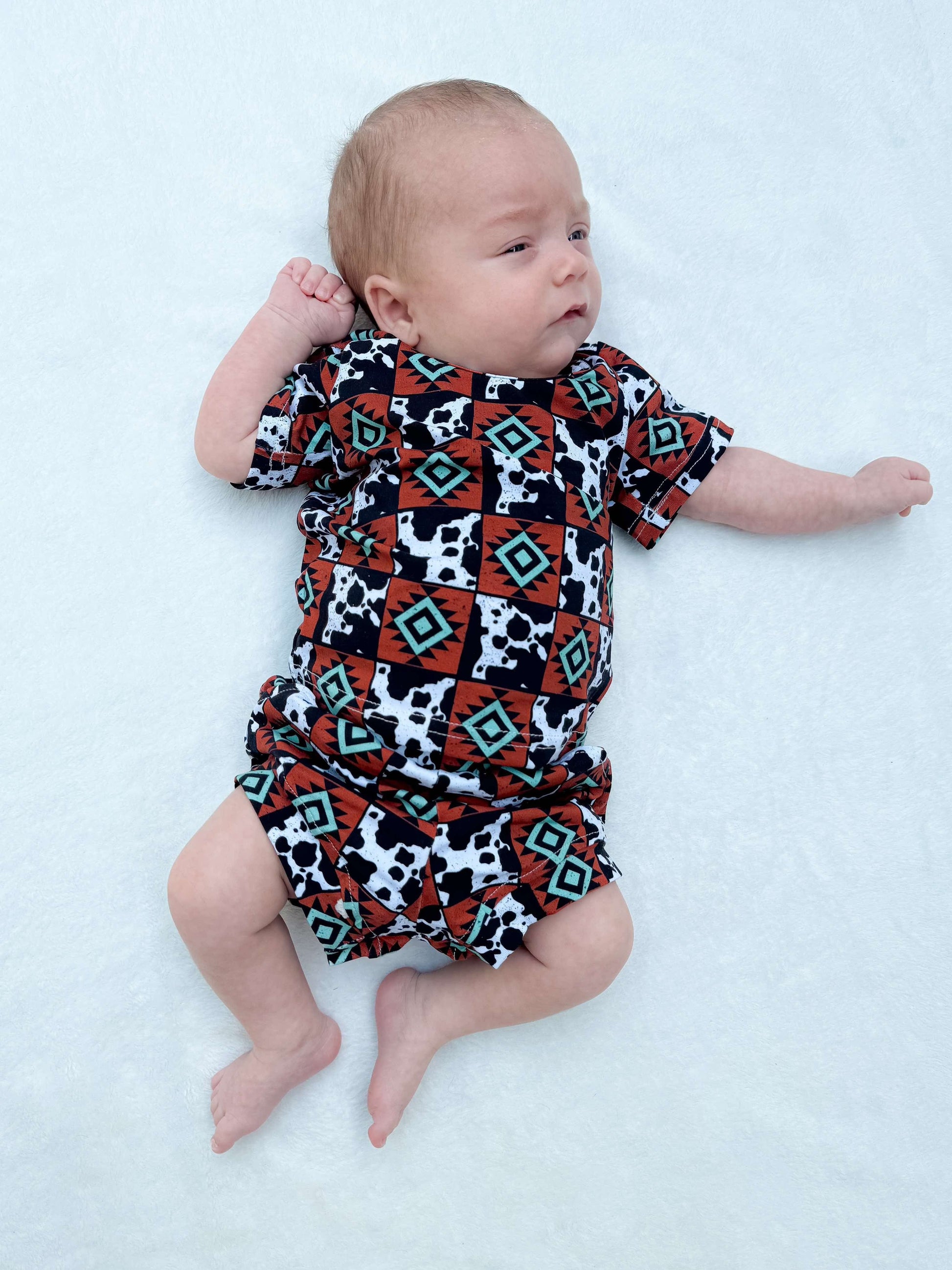 Cow & Aztec Checkered Short Set (FINAL SALE)