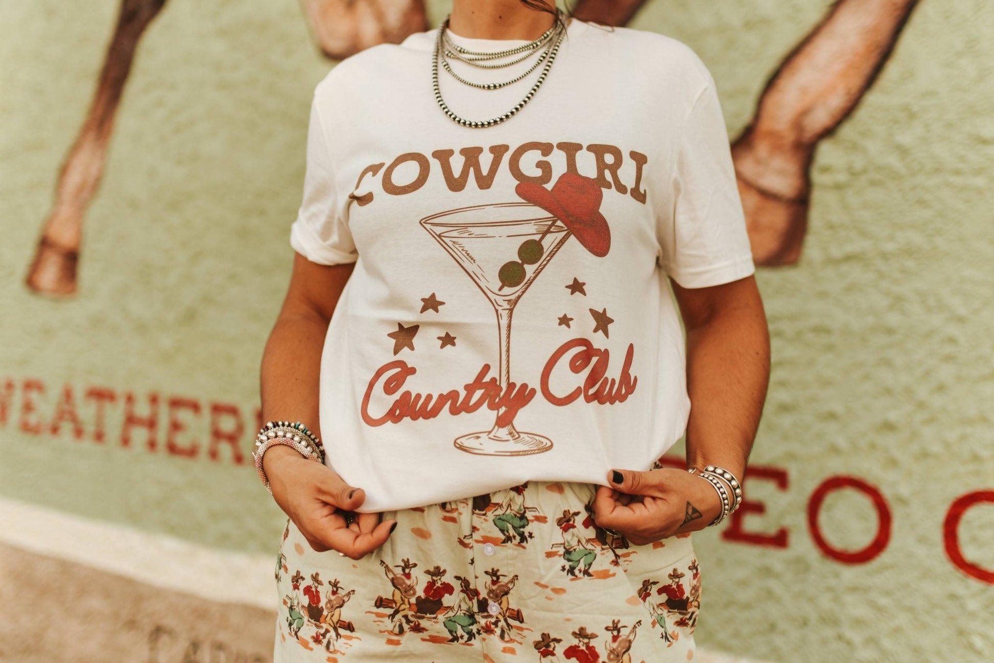 Welcome to the Cowgirl Country Club—where the dress code is denim, the cocktails are cold, and the only thing more exclusive than our guest list is our attitude. This tee is for the high-class, high-kickin’ ladies who can rope a heart faster than they can say “y’all.” Equal parts boujee and backwoods, it’s made for girls who brunch in boots and bless your heart with a smile.