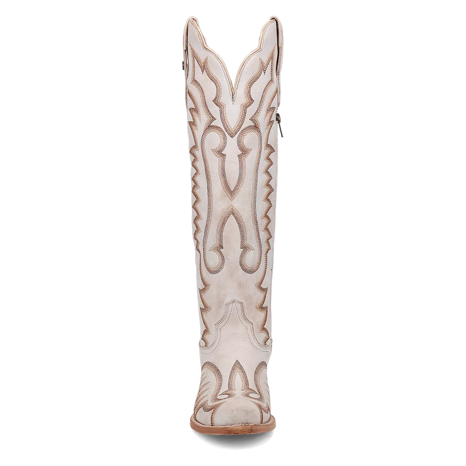The Dan Post Josie Women's Leather Cowboy Boots are a stunning blend of traditional Western style and elegant design. Made from high-quality leather, these boots feature a rich, smooth texture that exudes sophistication and durability. The impressive 19-inch shaft commands attention, beautifully detailed with intricate stitching that enhances the boots' refined look.