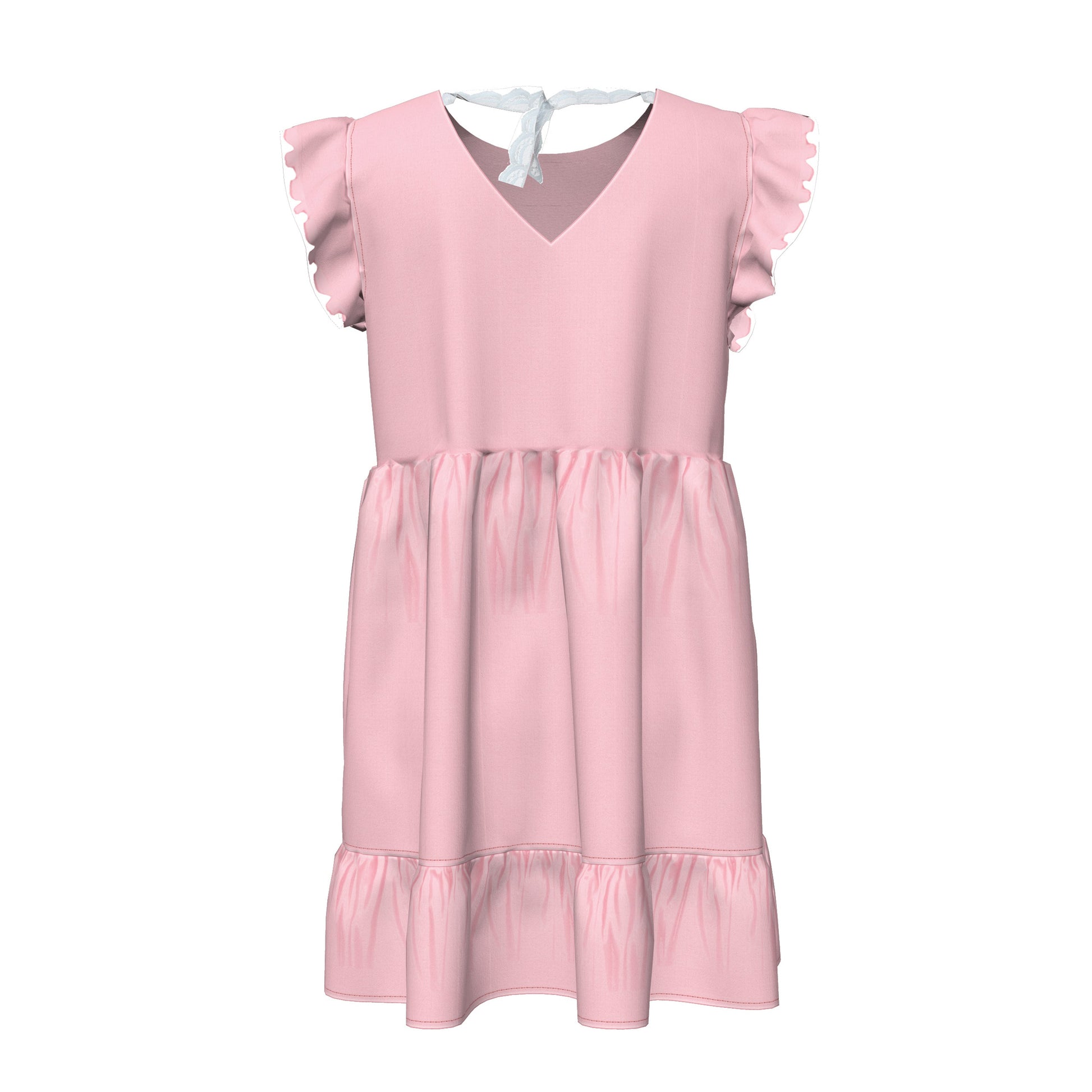 Any little girls must have for the spring. Beautiful light pink ruffled dress, with a lace tie in the back