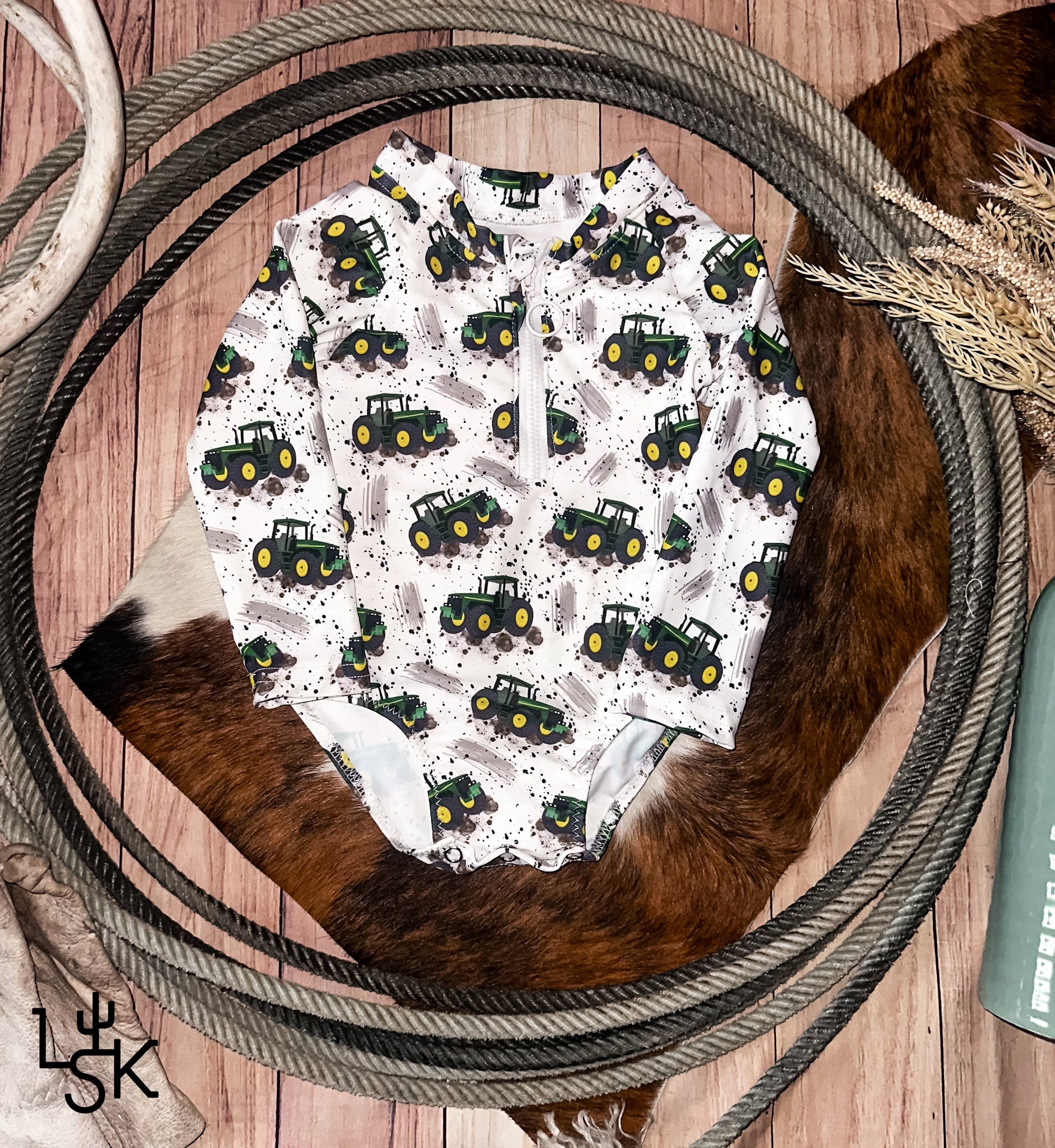 Protect your little one's skin from sun up to sun down with our sun-safe One Piece Swimsuit! Perfect for splashing all day and providing optimal sun protection, this adorable piece features cute western and farm prints for all cowkids. Plus, its long, easy-pull zipper makes changing a breeze - whether wet or dry!