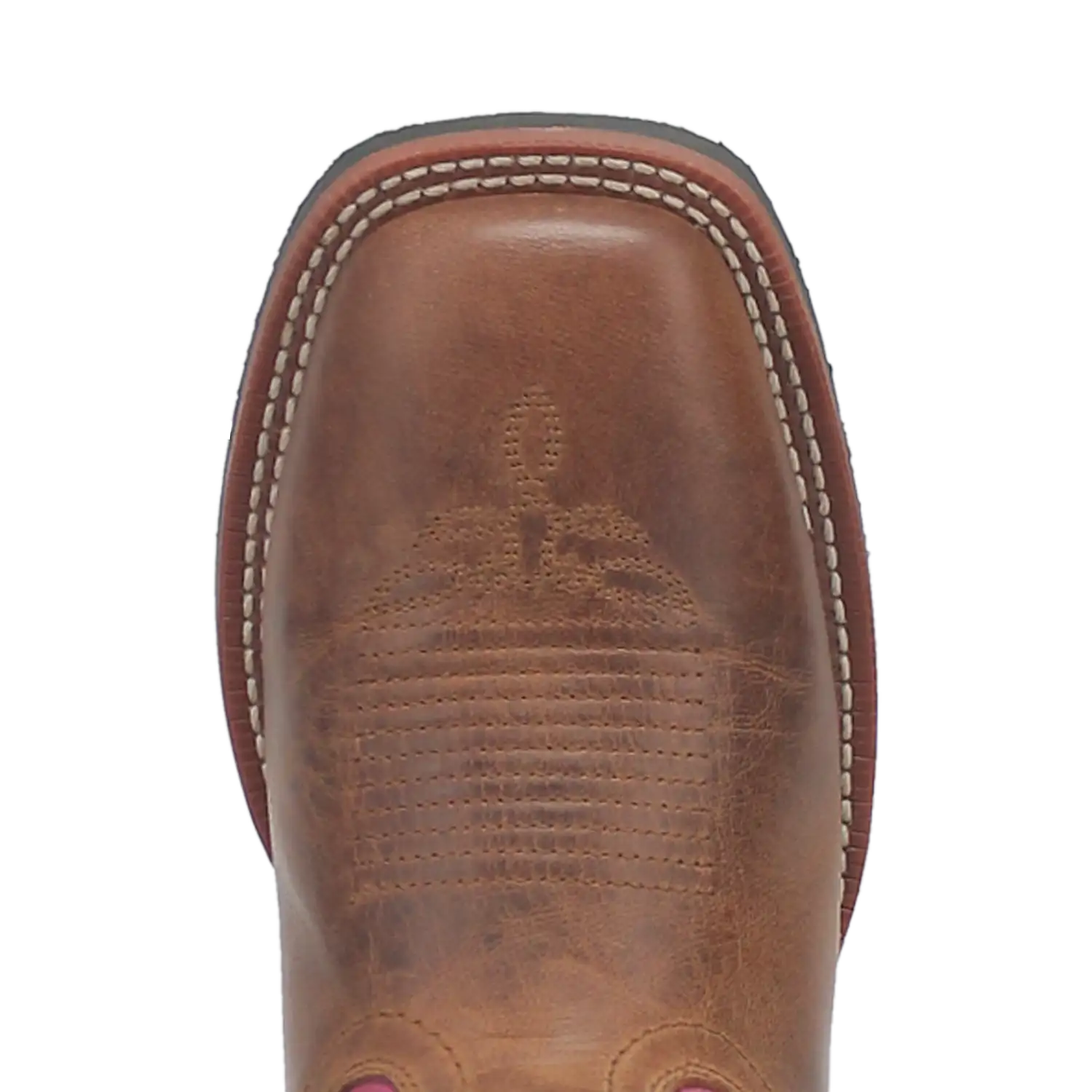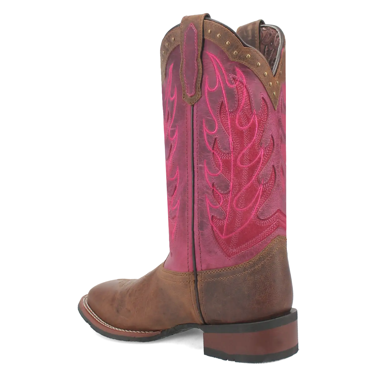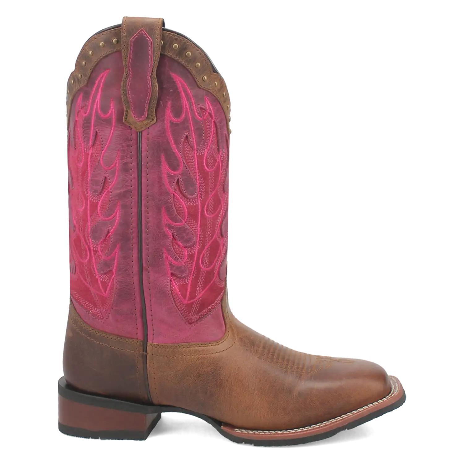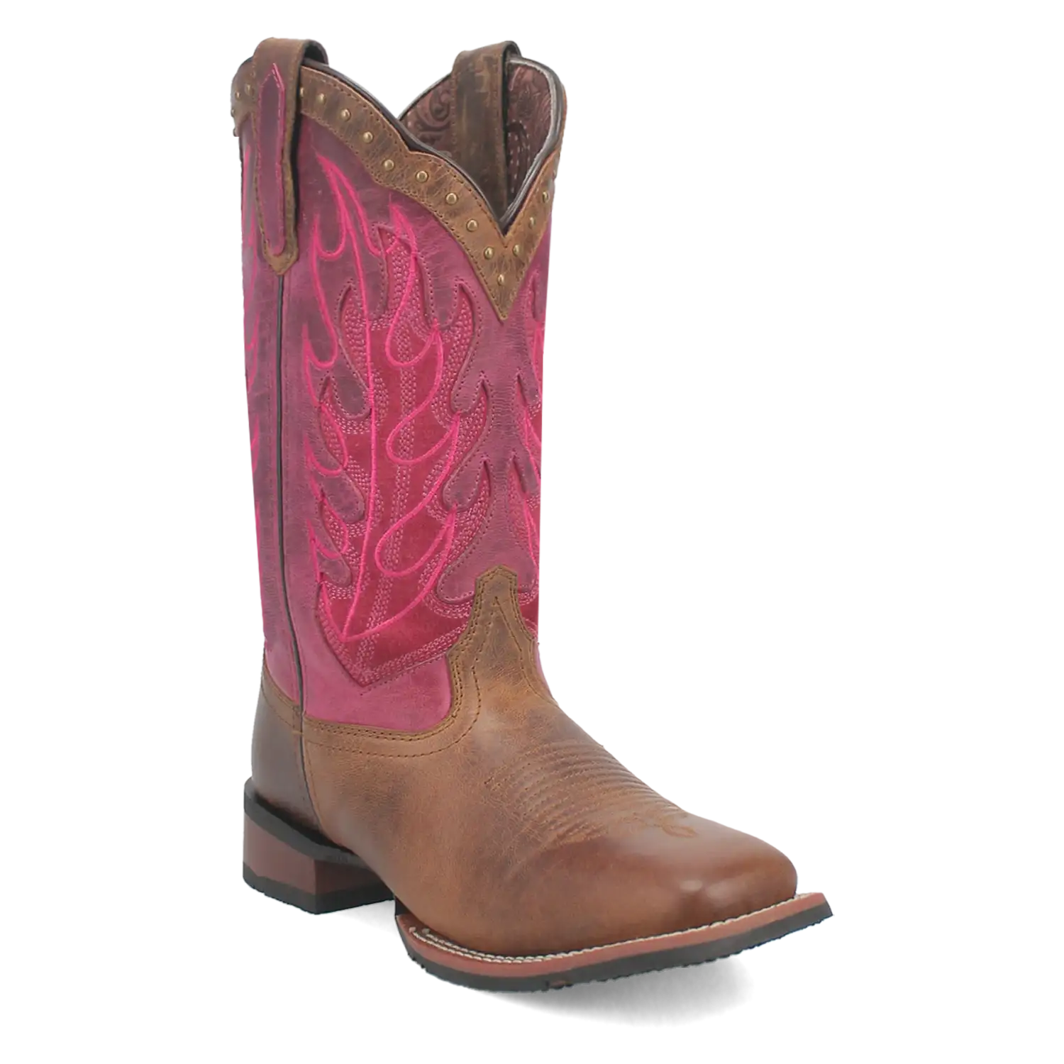 Step out in style with the Laredo Faye Cowgirl Boot, a stunning blend of Western charm and modern comfort. Made from genuine leather, this boot features an 11" shaft height and 12" shaft circumference, creating a flattering, secure fit. The broad square toe gives your feet plenty of room, while the 1" heel provides a comfortable lift for all-day wear.