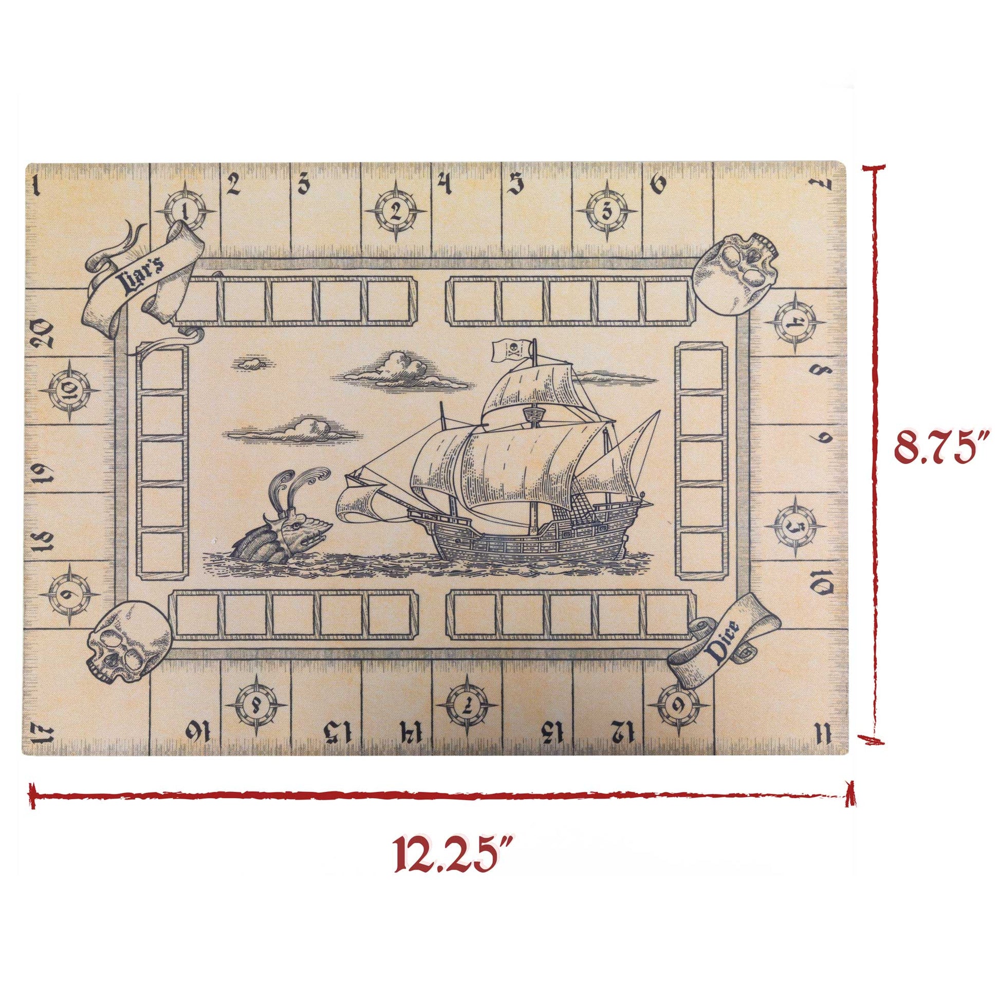 Up to six swarthy sea dogs can lie and cheat their way through this pirate-themed classic game of bluffing. Track your bids on a handy bidding track around the edge of the included neoprene mat!