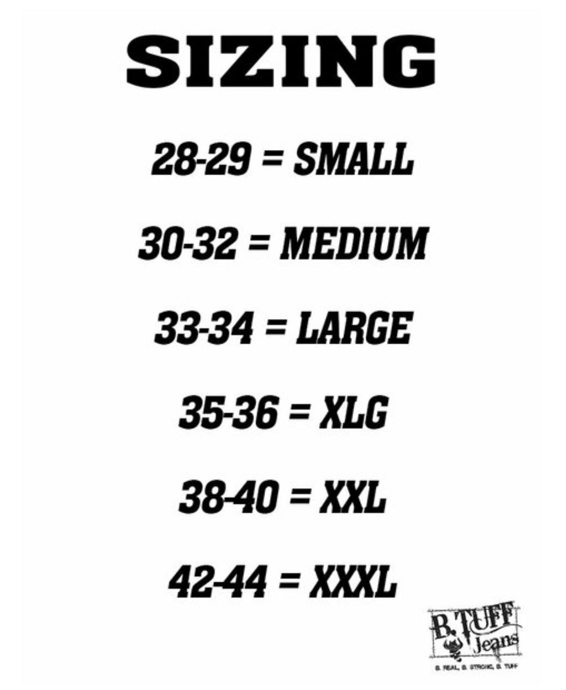 SM: 28-29 | MD: 30-32 | LG: 33-34 | XL: 35-36 | XXL: 38-40 | XXXL: 42-44
