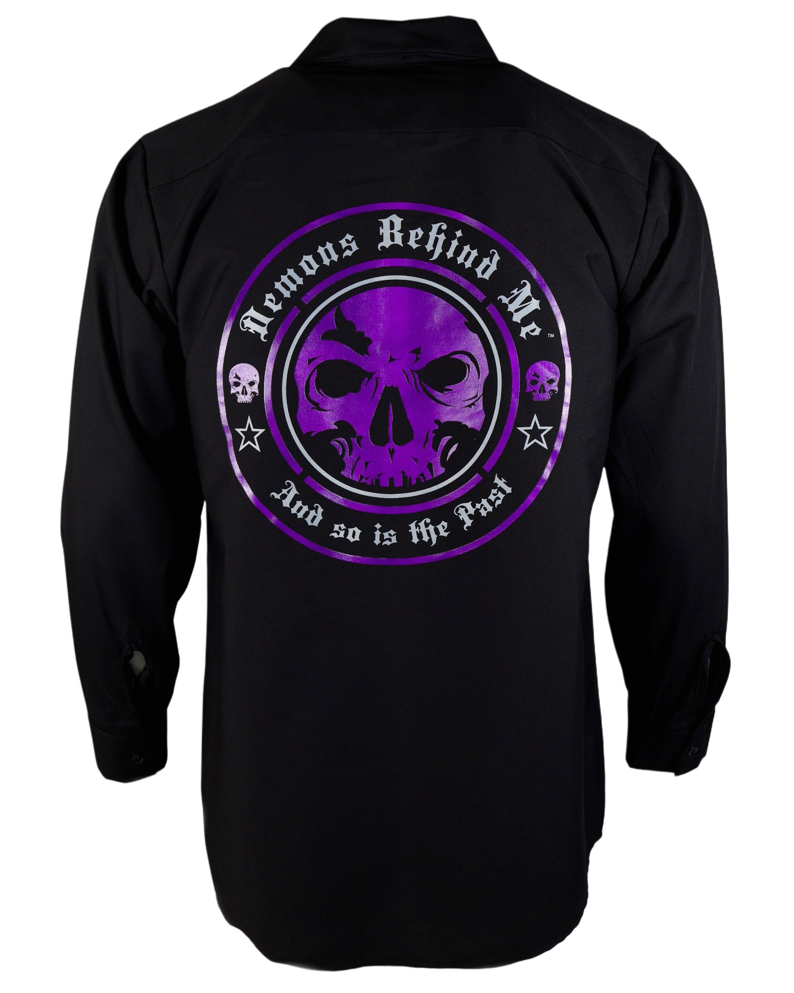 Men's Long Sleeve Black Embroidered Shop Shirt - Purple Logo