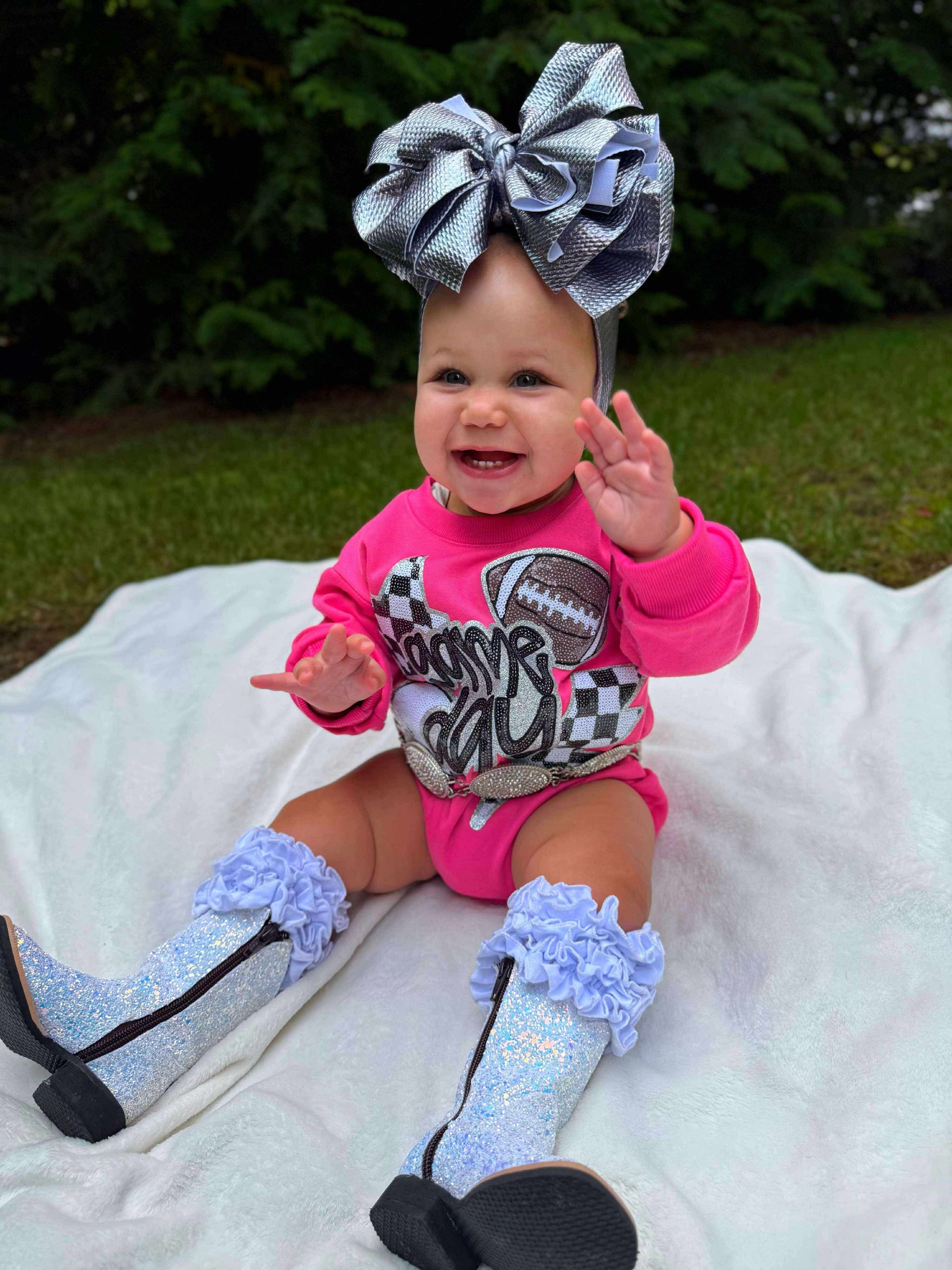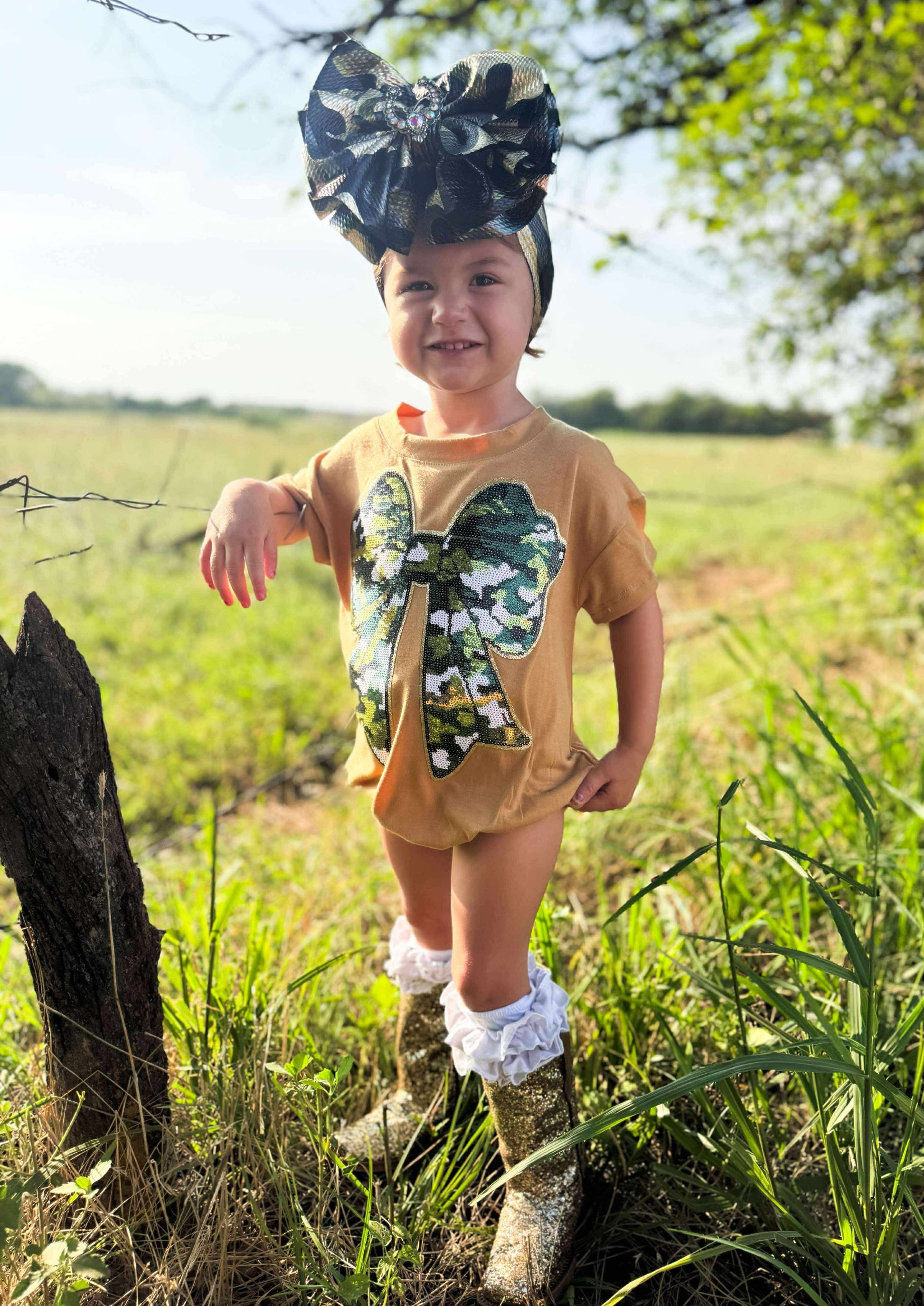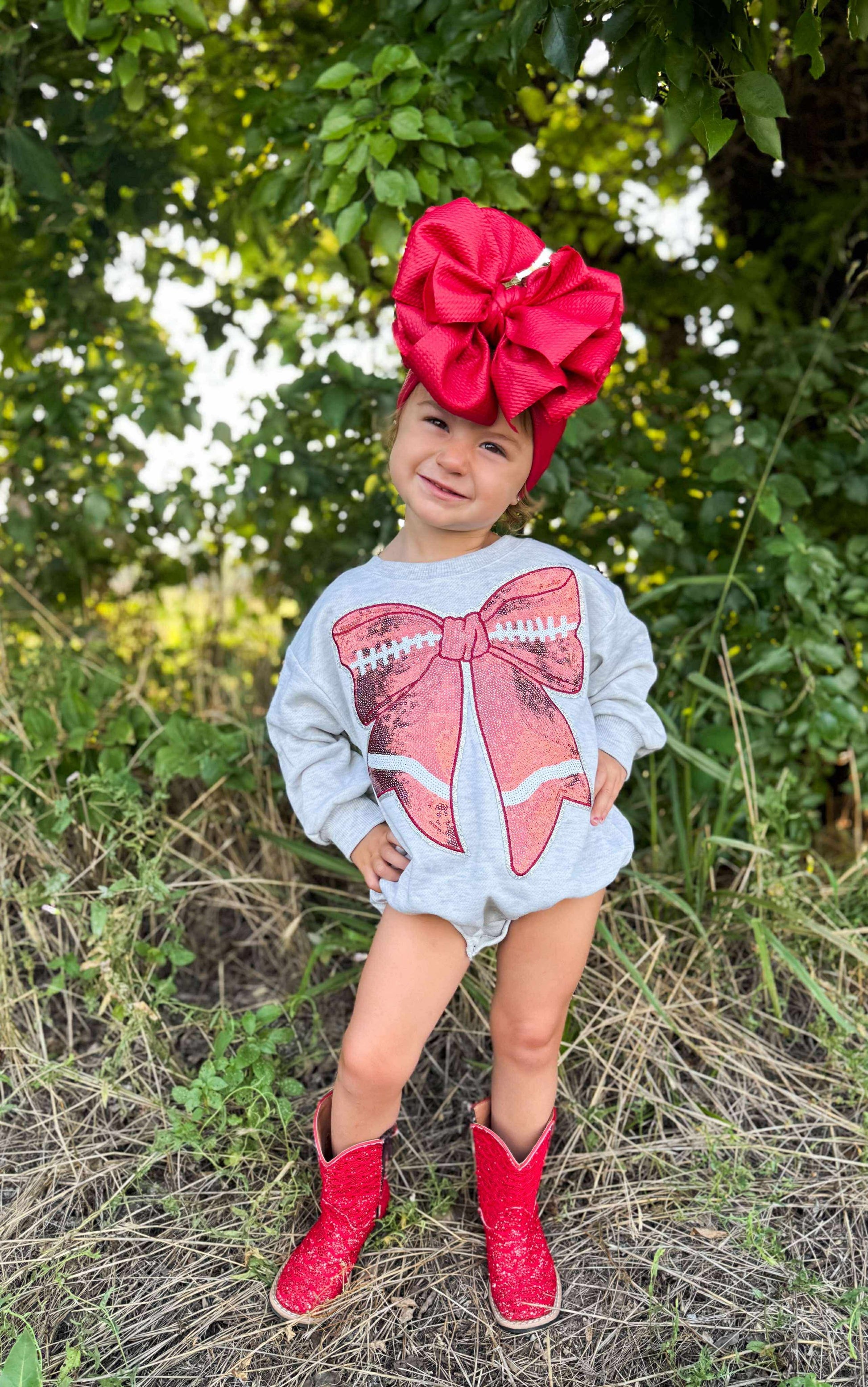 The bow measures approximately 7" wide x 6" tall. The band of the bow measures approximately 13" x 4"