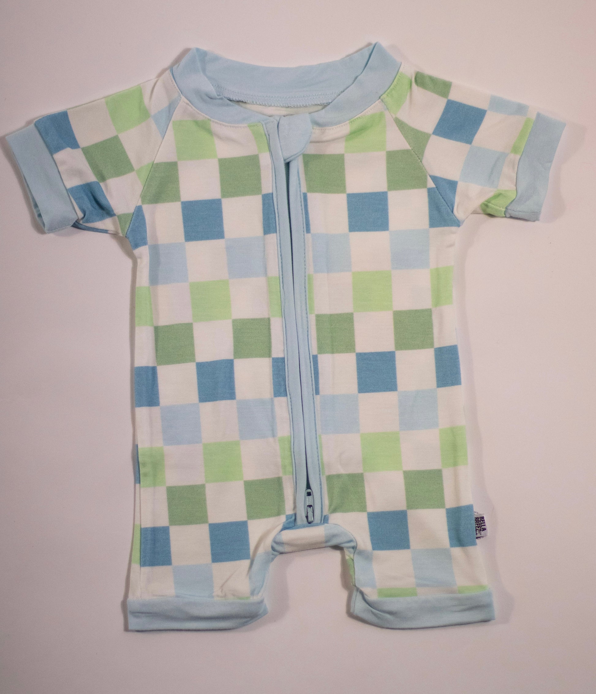 Ocean Checks Bamboo Shortie Romper (FINAL SALE)