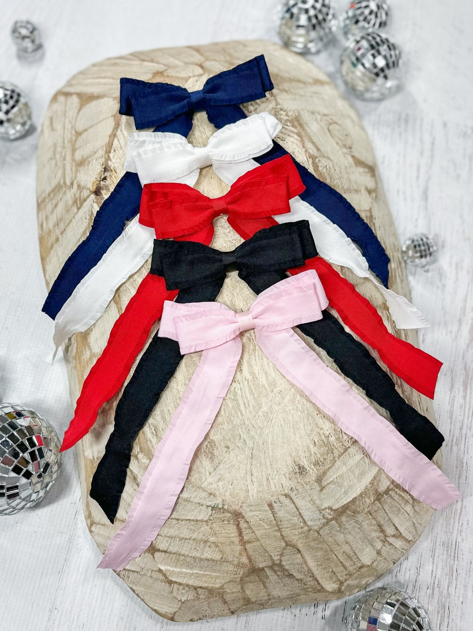 Add some playful charm to your hairstyle with this Ruffle Edge Ribbon Hair Bow! Featuring a unique ruffle edge design, this hair bow will bring a touch of class to any look. Made with high-quality ribbon, it's perfect for adding a pop of color and fun to your everyday style!