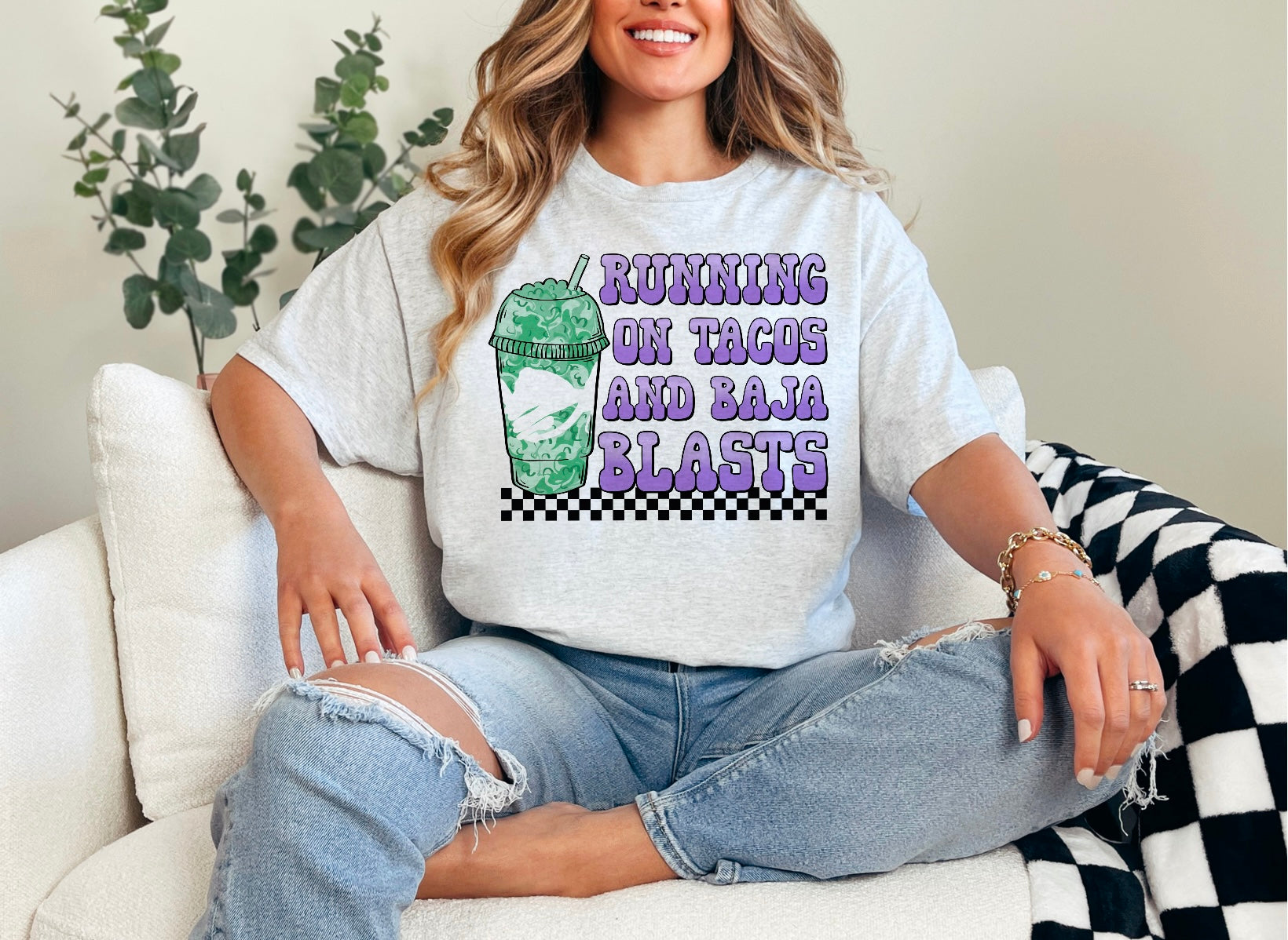5.5 oz., 50% preshrunk cotton, 50% polyester