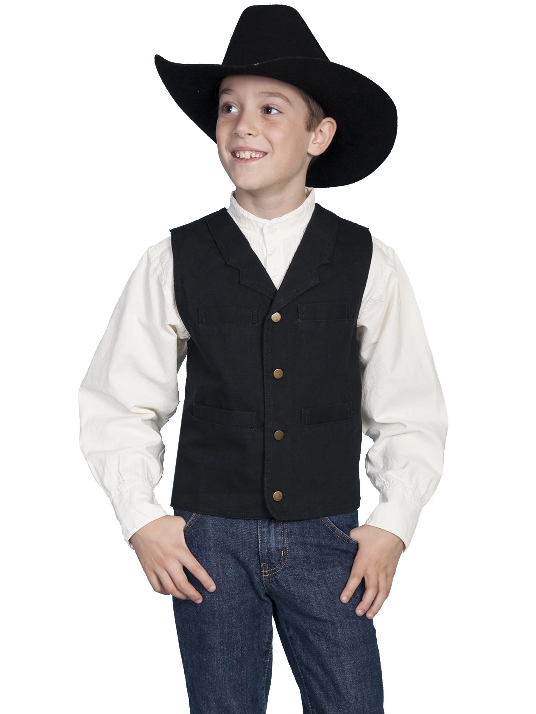 This Kids’ Canvas Vest is built tough for everyday adventures while keeping comfort in mind. Made from sturdy 100% cotton canvas and fully lined with breathable cotton stripe fabric, it offers durability without sacrificing softness. The classic design makes it perfect for school events, family gatherings, or just dressing up your little one with western-inspired charm. A versatile piece that layers easily over shirts and tees, this vest is both practical and stylish for any young cowboy or cowgirl.