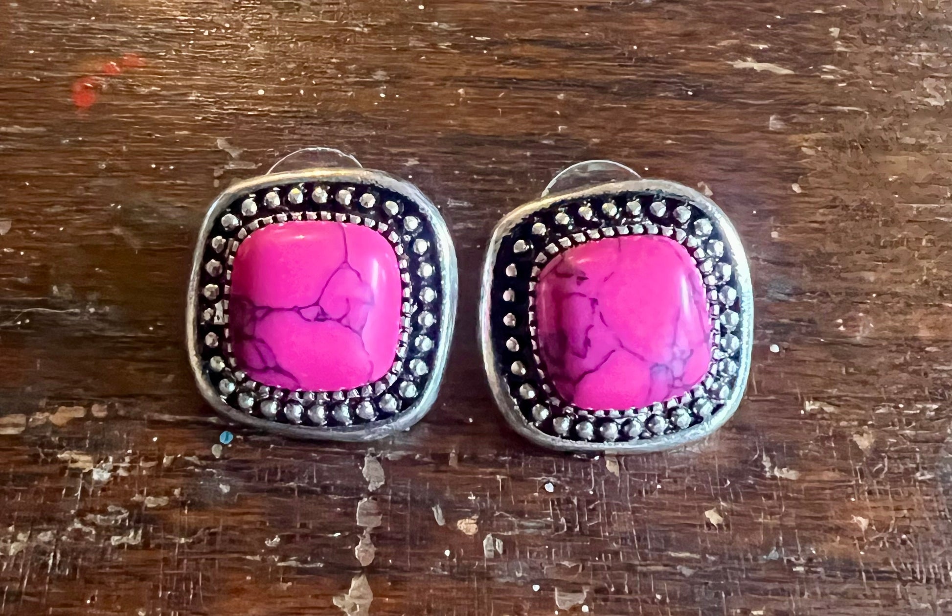 Western Southwestern Earrings Studs Teardrop Square | Stud | Turquoise Jewelry Navajo | Post back - lead & nickel complaint pink, white and black