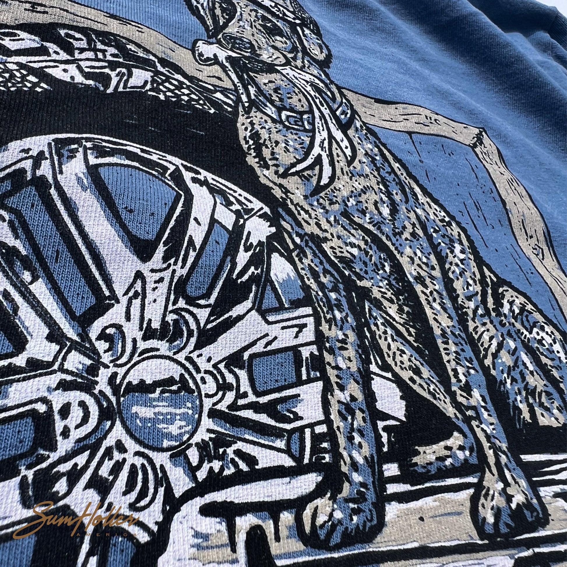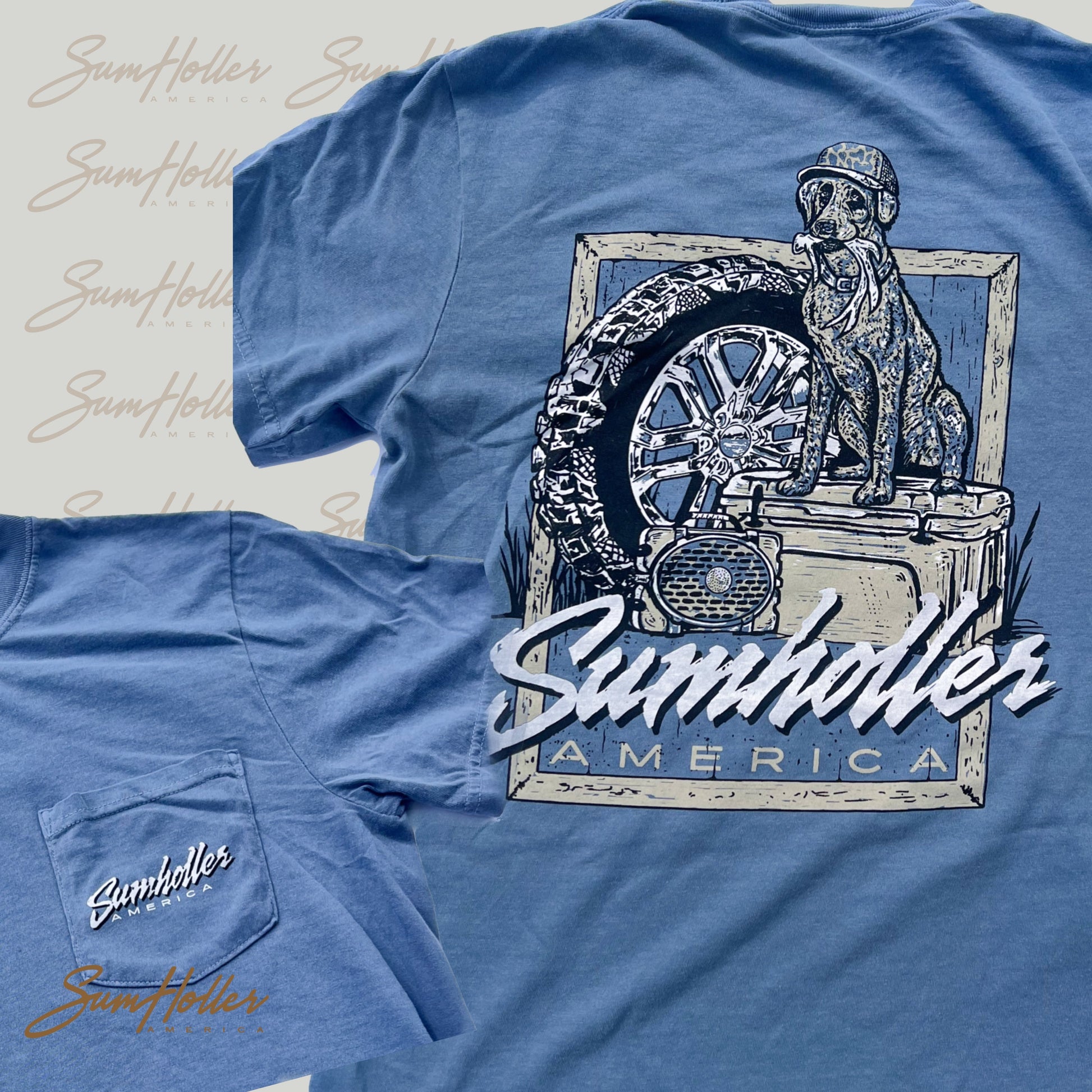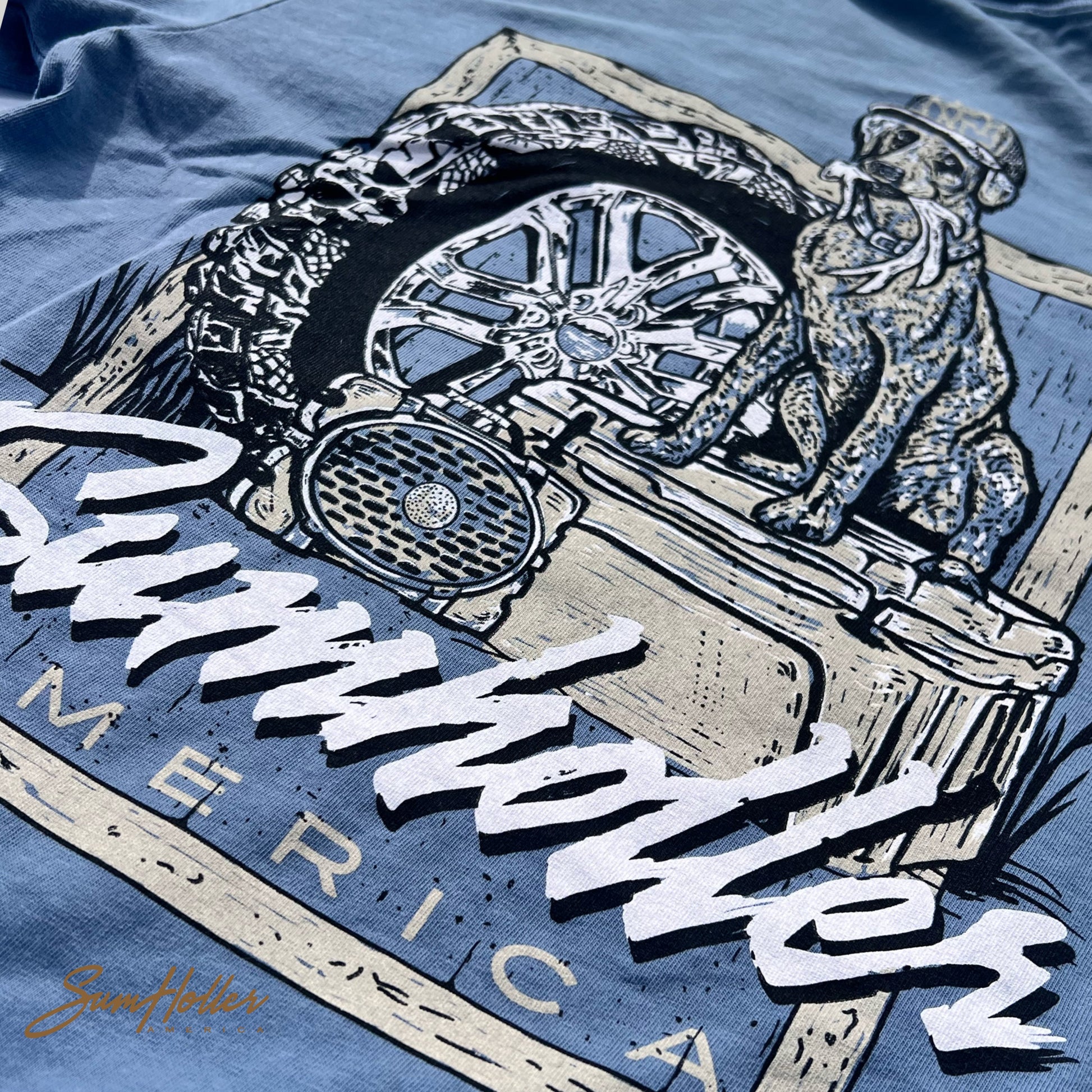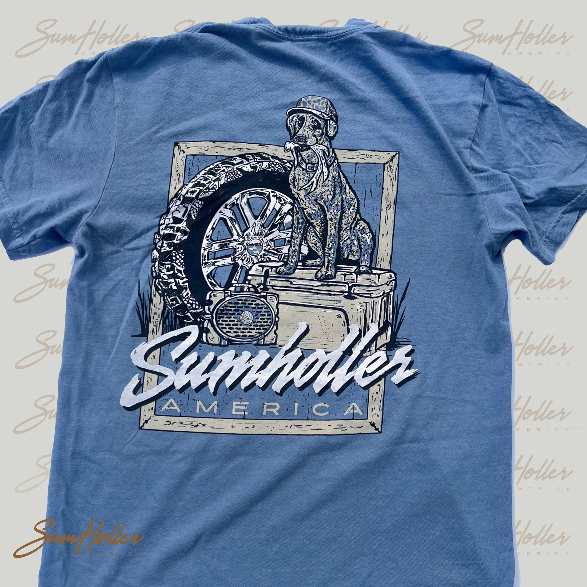 Make a statement and step up your fashion game with the SumGraps! This super-soft, blue jean comfort colors tee is more than just apparel, it's an attitude. Featuring a cool front left chest pocket print and a bold offroad wheel and coon dog design on the back, this tee brings an adventurous spirit to wherever you go. Whether you're out on the trails or just chilling, the plush fabric ensures all-day comfort. Available in sizes from Small to 3X, it's your top choice for looking stylish and feeling great.