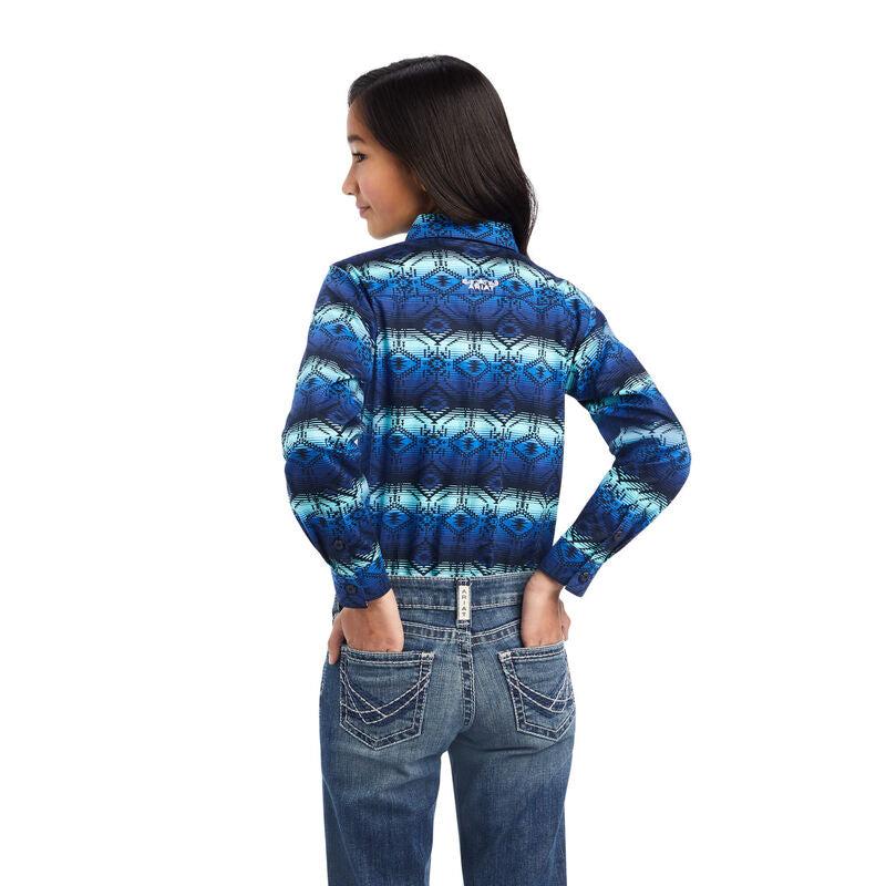 Every budding rodeo star needs a good button-up. This one mixes Western styling with a bold ombre pattern to create a shirt she'll wear from school to the barn.