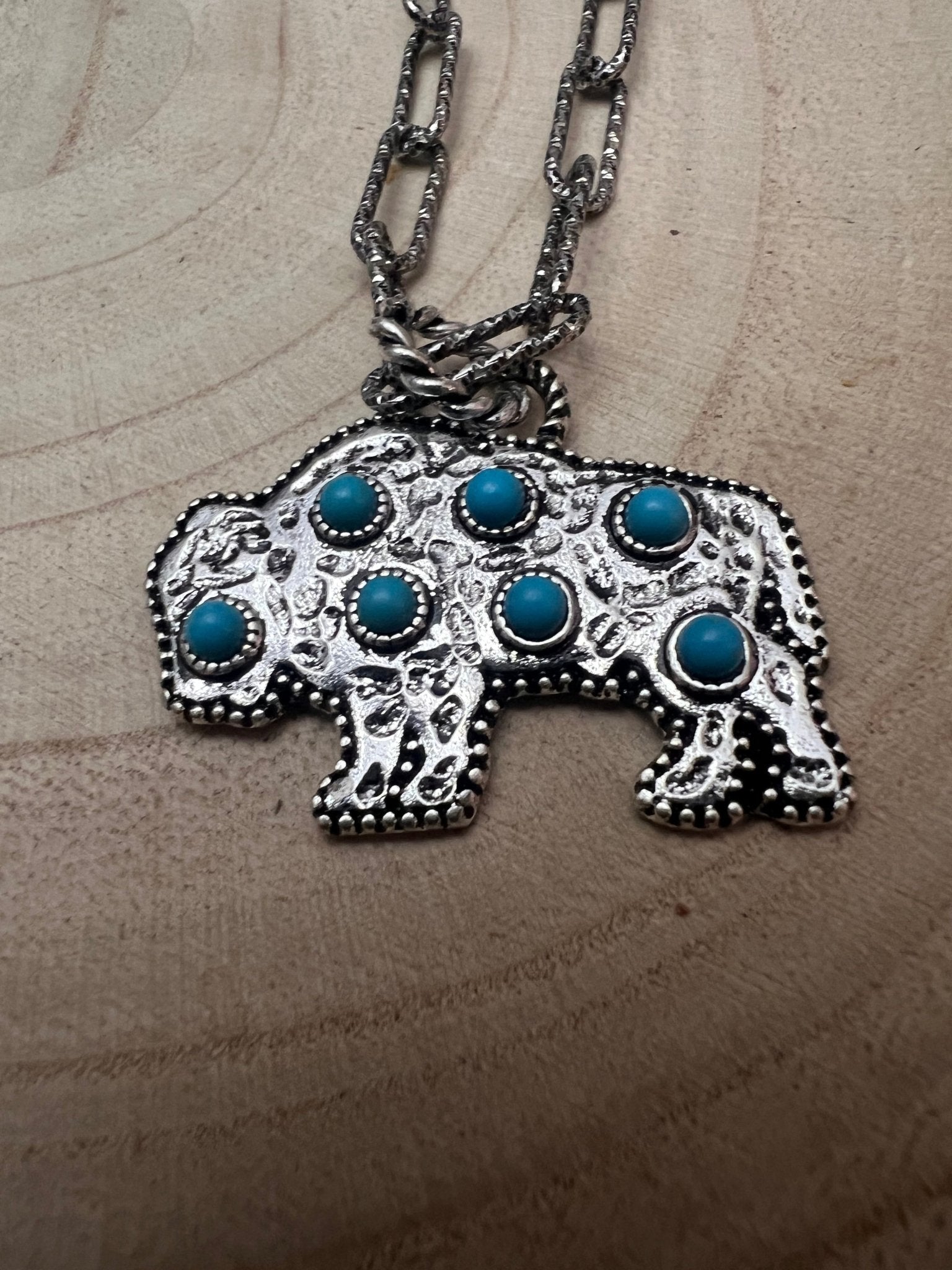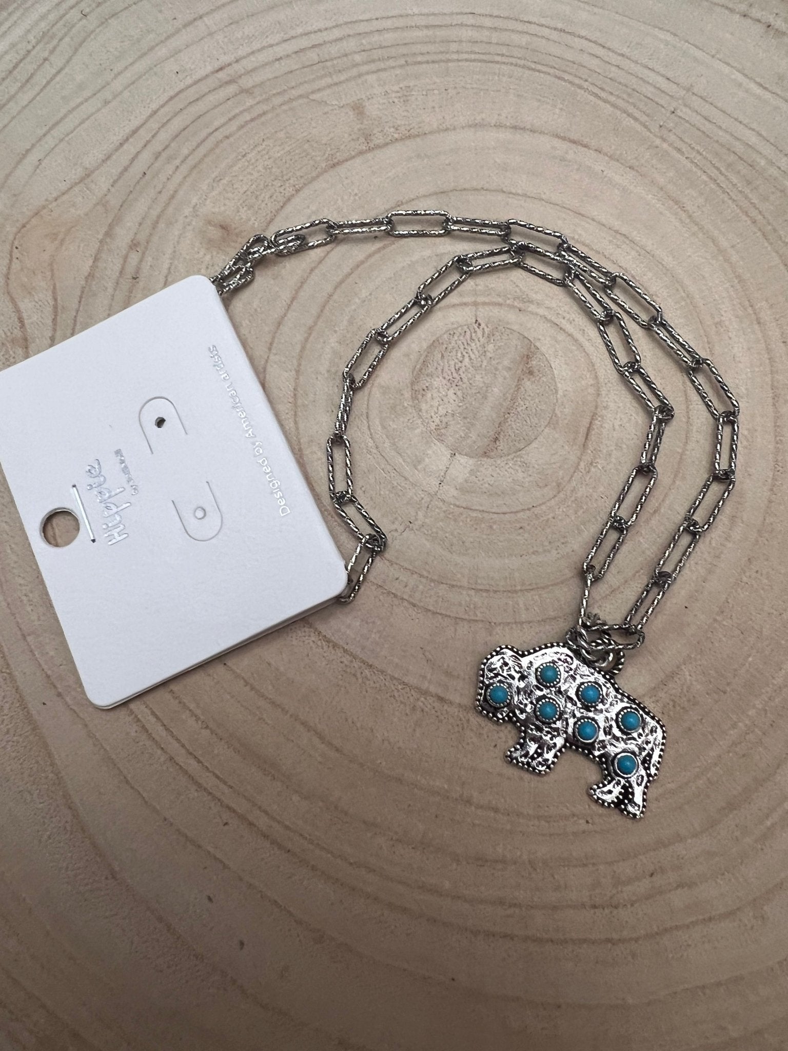 Western Buffalo and Faux Turquoise Necklace - 18 inch + 3