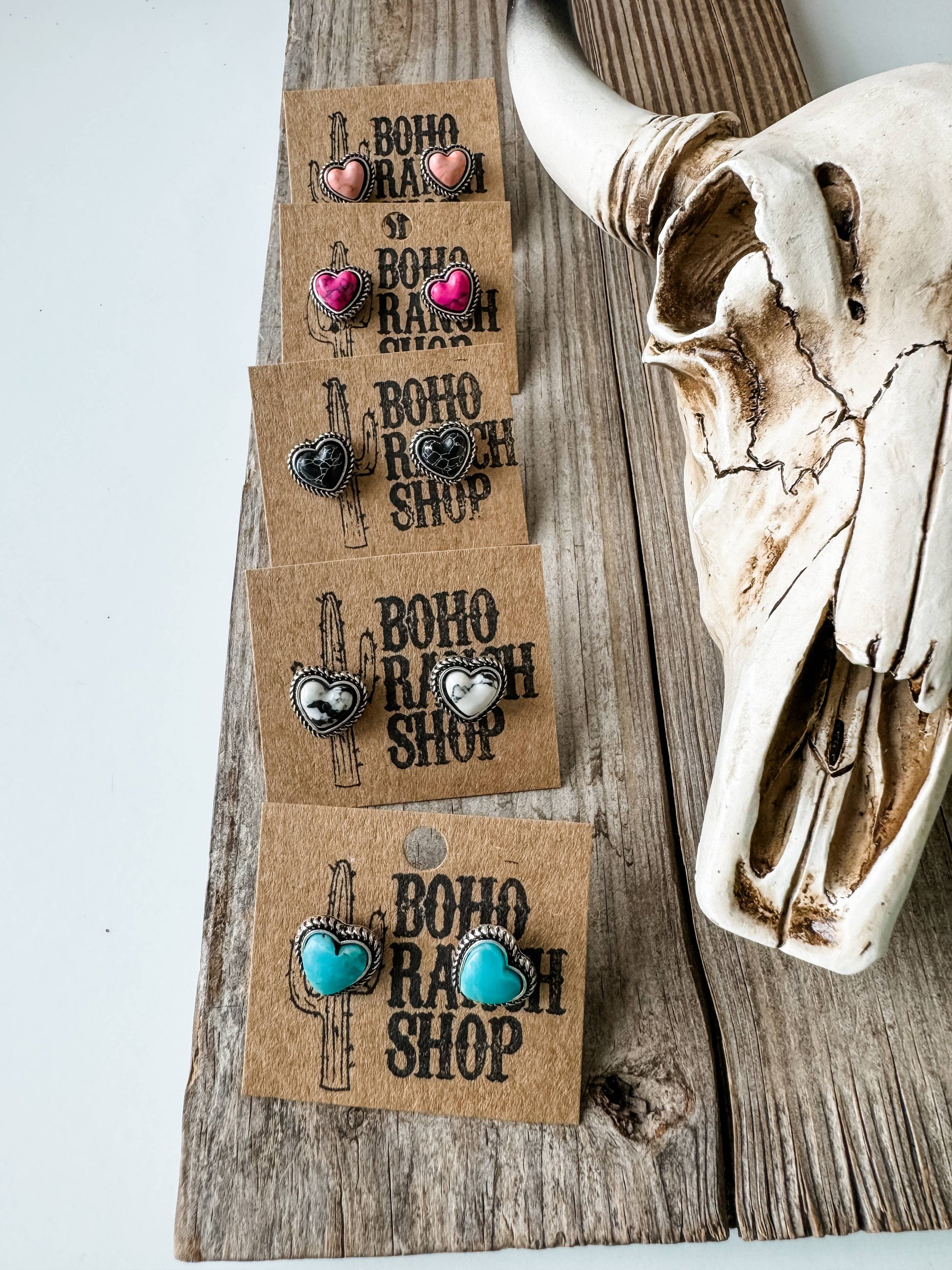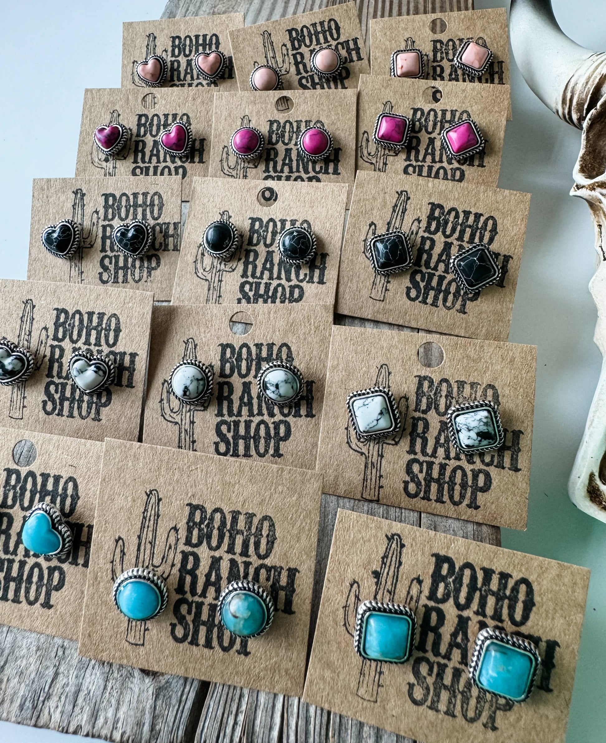 Western Mini Stone Stud Earrings - Heart Square Circle
