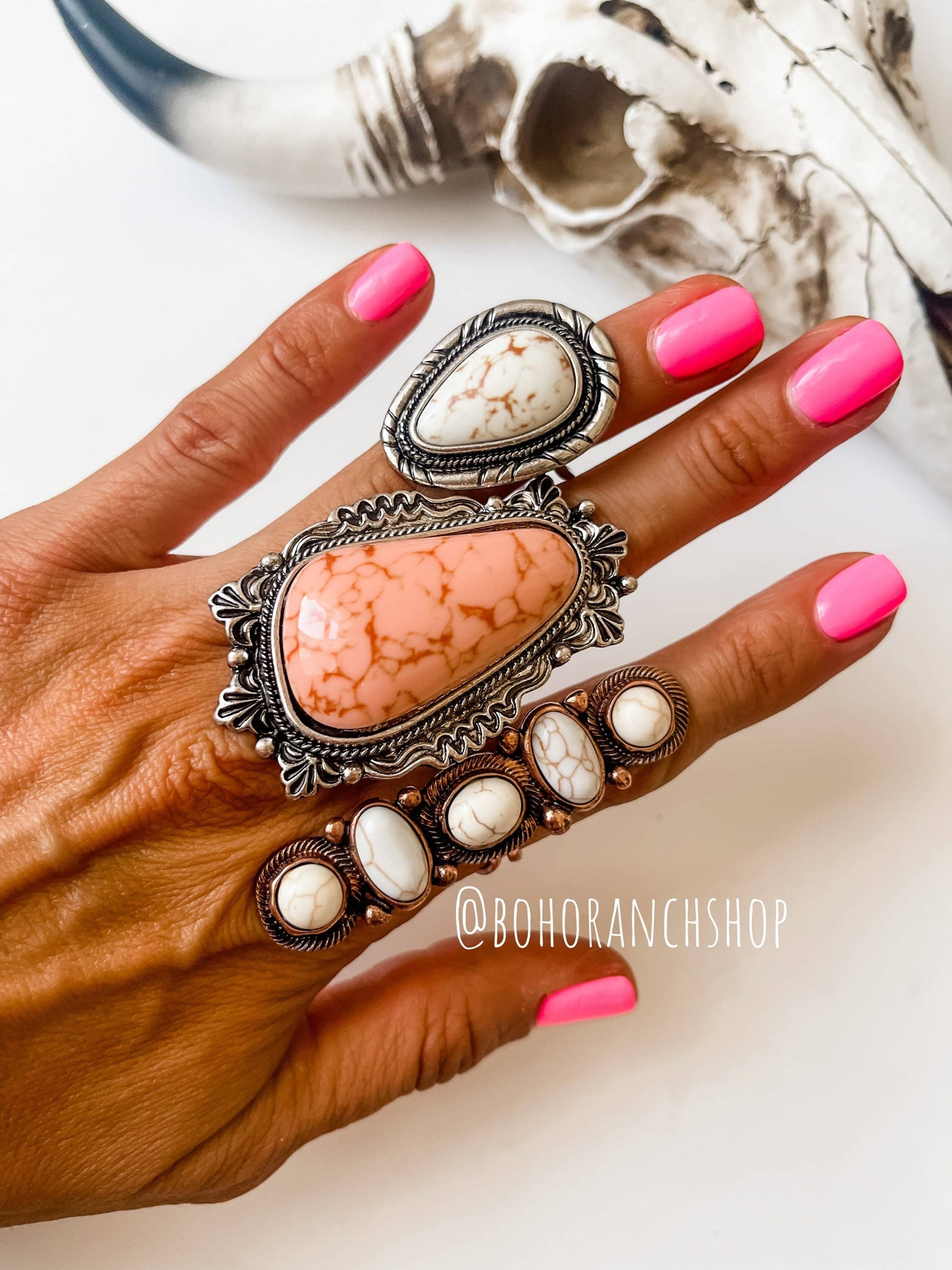 Tear Drop Ring Western Stone White Turquoise Colored Ring Adjustable | Gift Idea | Anilo | Accessories | Jewelry
