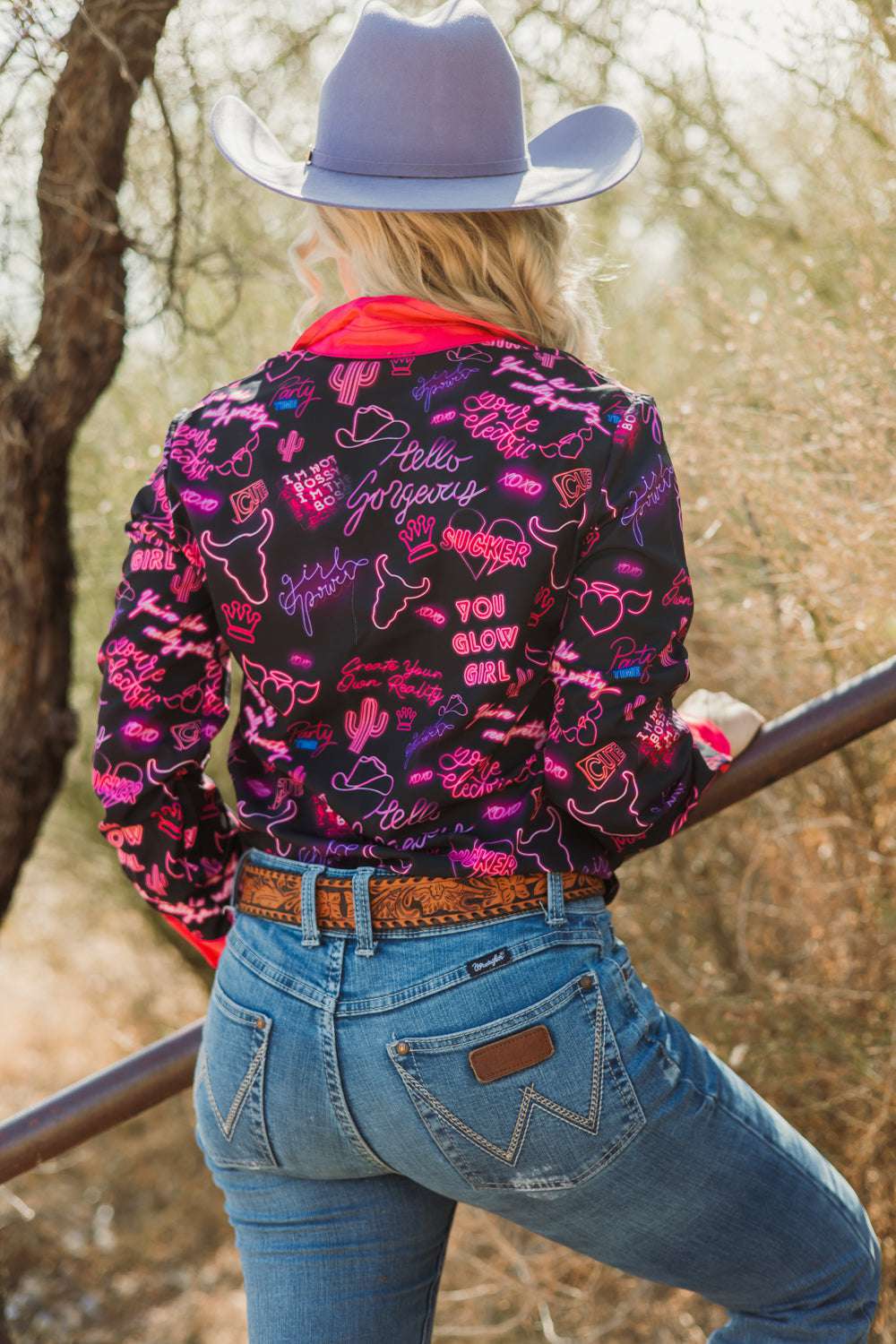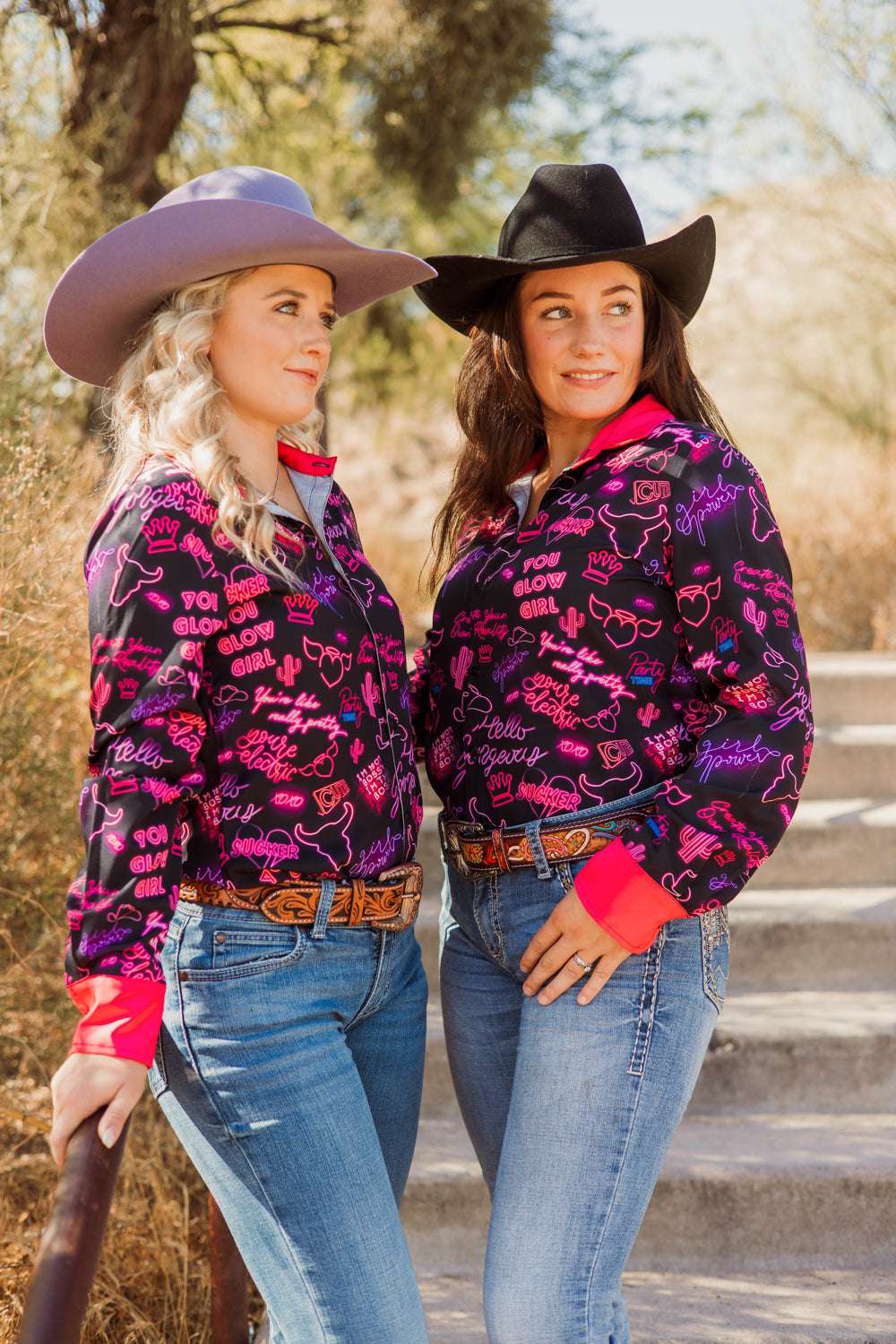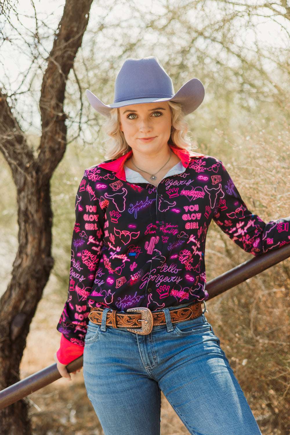 Radiate confidence in our You Go Girl Button Down. It's like a power surge for your wardrobe. From sassy boss proclamations to glow-up affirmations, this shirt's got sayings that'll make your inner diva two-step. With hot pink cuffs and collar adding an electrifying pop, this shirt isn't just clothing; it's a neon-lit declaration that you're here to wrangle life and look fabulous while doing it. So slap on this shirt and roll up to the pen like you're leading a parade, because life's a runway, and you're rocking it like a boss!